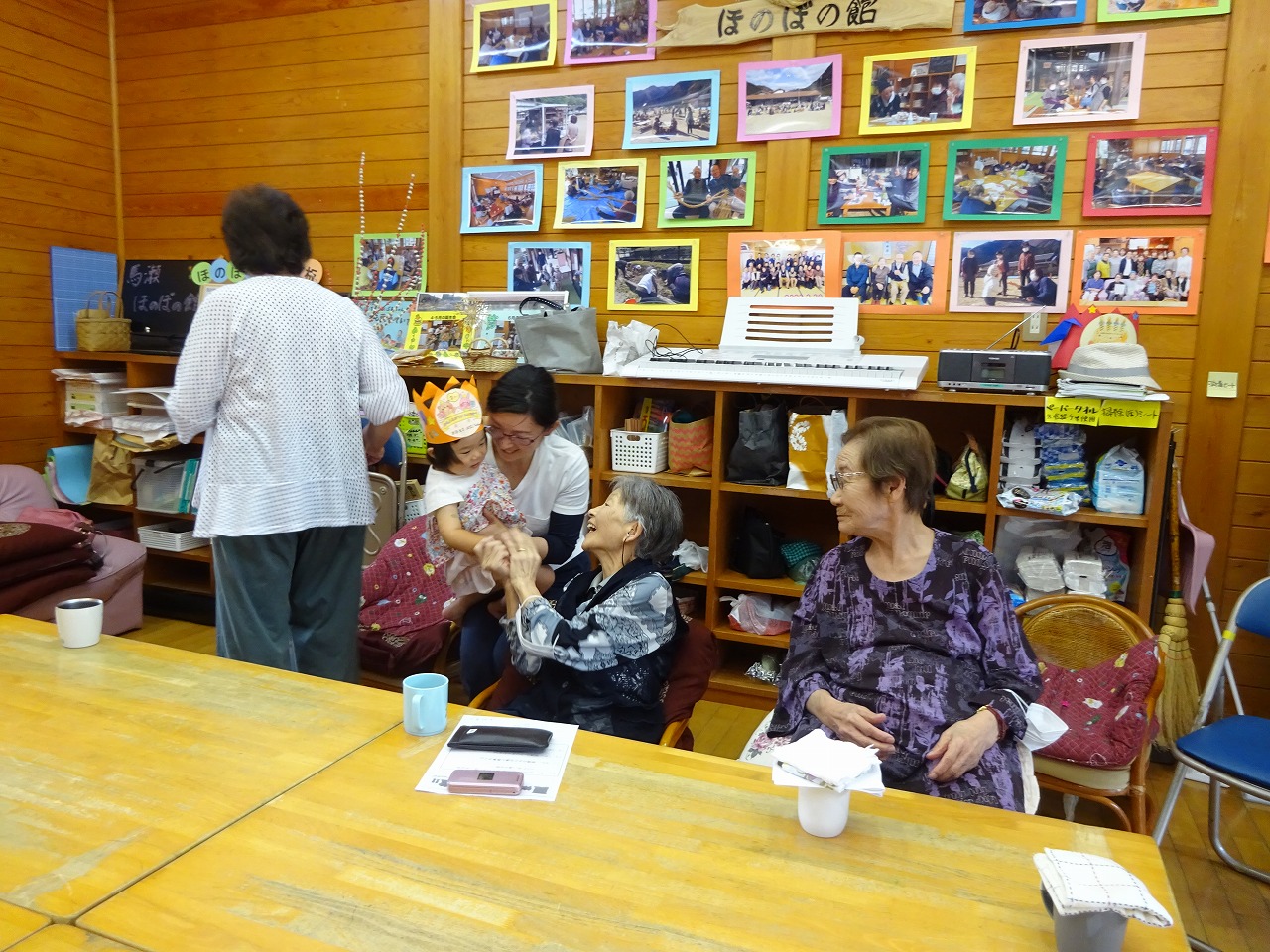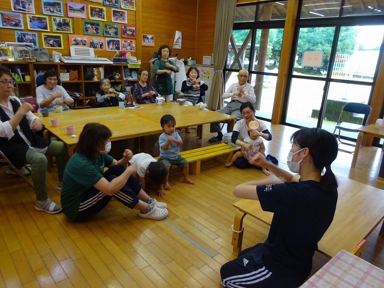 7月生まれのお友だちの2歳のお祝いをしました!インタビューでは「好きな食べ物はなんですか?」「すいか」と上手にお話してくれました。「リンゴころころ」の手遊びをおじいちゃんおばあちゃんも楽しそうにやって下さいました。「アンパンマン体操」ではおばあちゃんたちにハイタッチしながら体操をして楽しいお誕生会になりました。