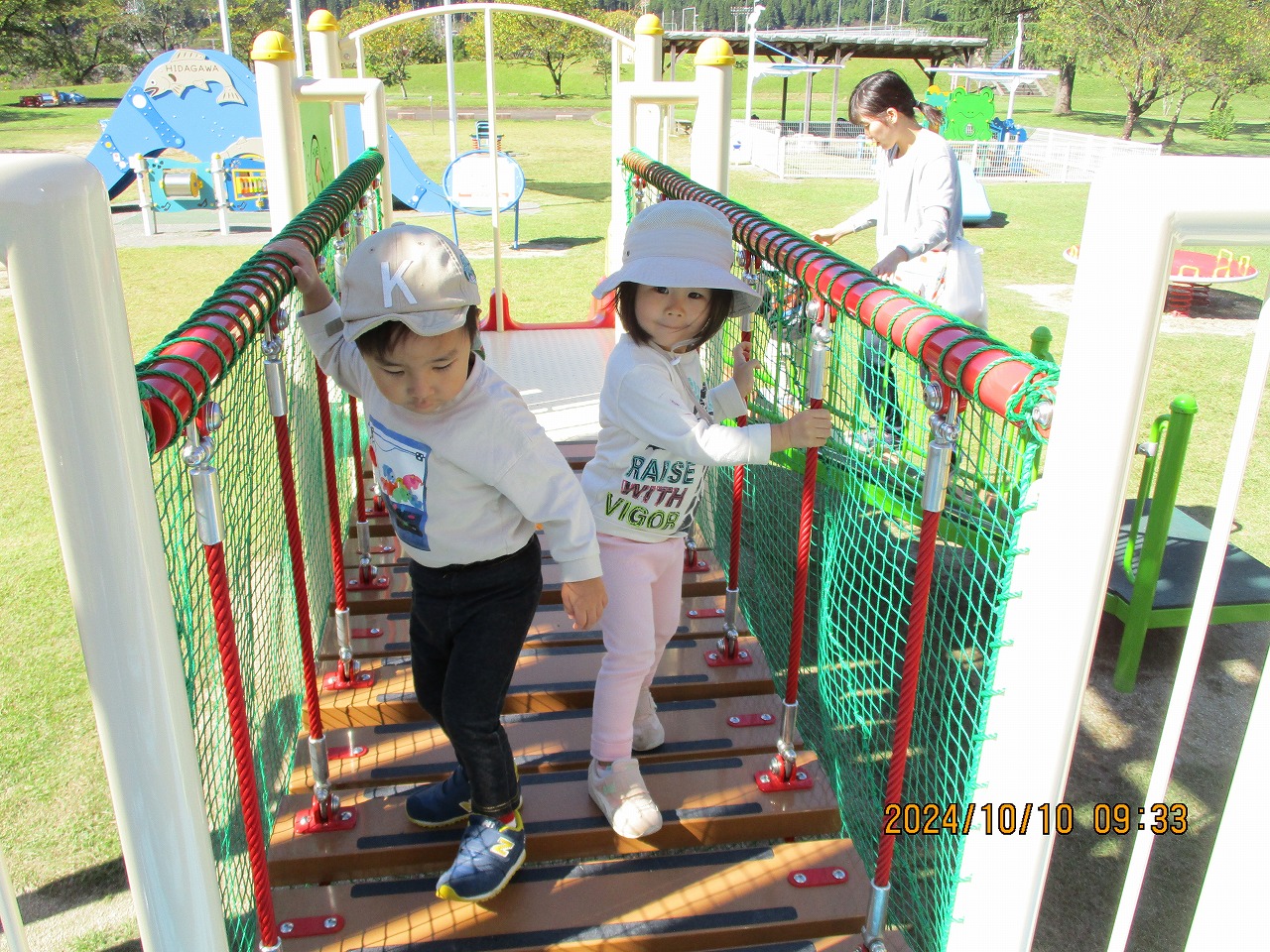 良いお天気になり、バスに乗って飛騨川公園へ!!公園をお散歩しておやつを食べた後は一番楽しみにしていた遊具遊び。すべり台やシーソー、ブランコ…あっちへ行ったり、こっちへ行ったりして遊んだね!一番大きなすべり台にも挑戦!ちょっぴり怖かったけど、おもしろかったね😊おもいきり遊べてとっても楽しい遠足になりました。