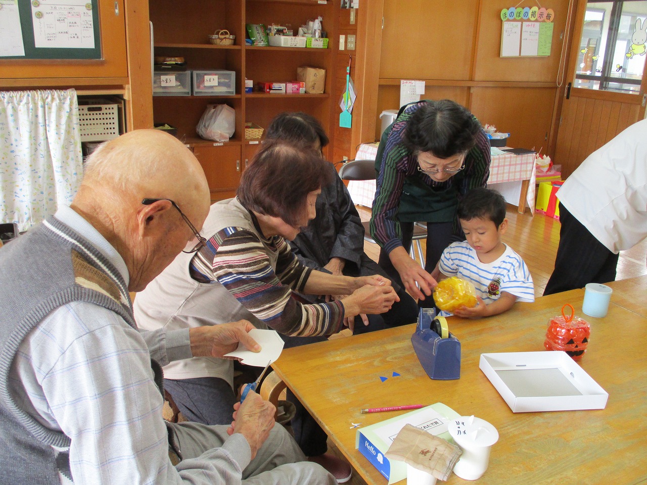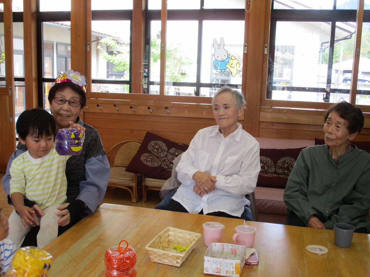 ほのぼの館のおばあちゃんが10月に誕生日を迎えられました。インタビューでは「どんなお仕事をしていたの?」の質問に「バローのお総菜屋さんで働いていました。」と応えて下さいました。お楽しみはもうすぐハロウィンということでペットボトルでジャック・オ・ランタンをみんなで作りました。できあがったランタンをうれしそうに見せていっぱいほめてもらったね!