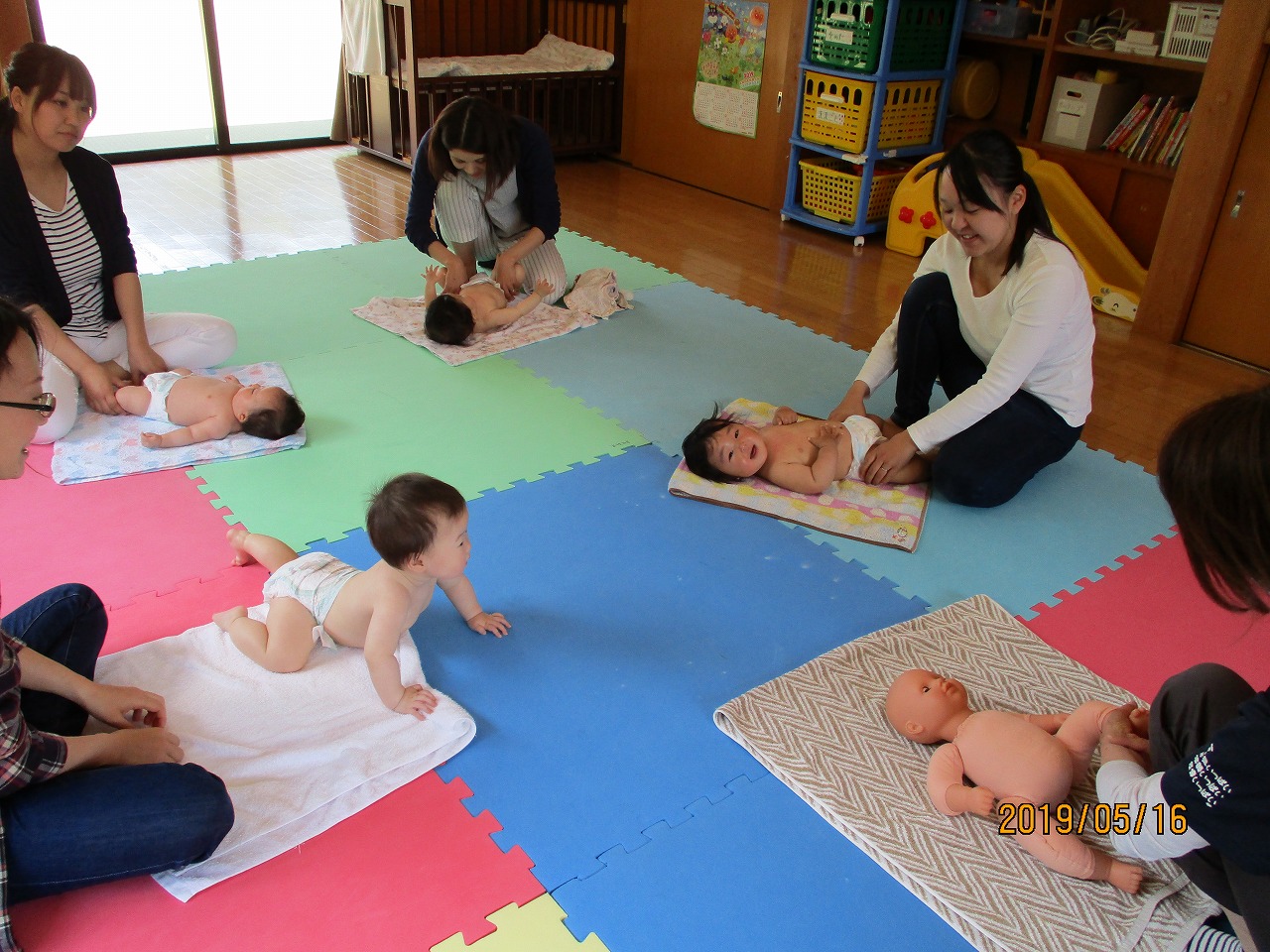 親子の触れ合いの大切さとベビーマッサージのやり方を教わりました。 |