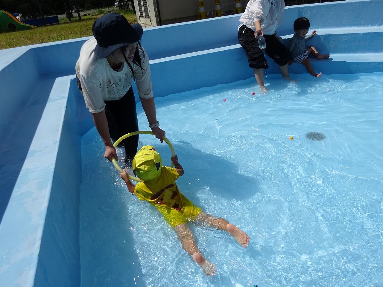園児用プール、ビニールプールで遊びました。 |