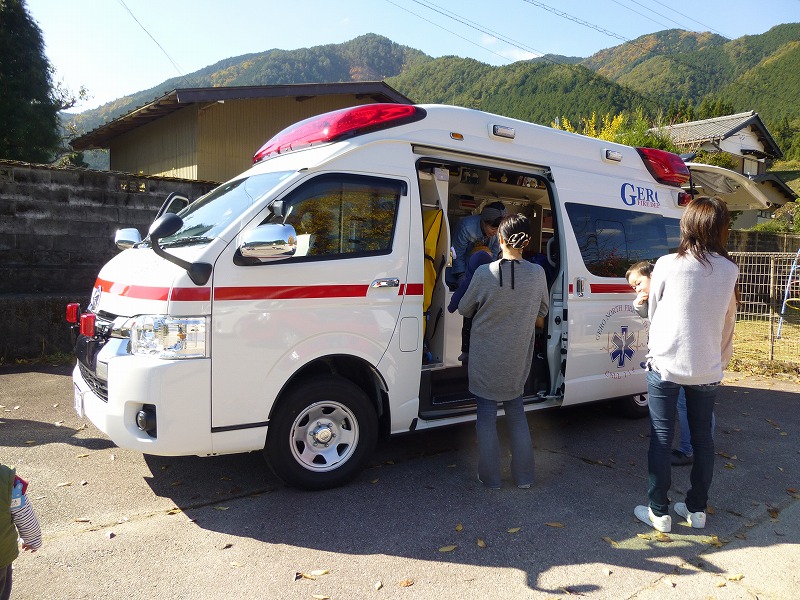 北児童館・北部乳幼児学級・馬瀬乳幼児学級の合同企画 萩原北消防車署の消防士の方からAEDを含む子どもの心肺蘇生法を教えていただきました。 子どもたちの大好きな消防車と救急車に乗せていただきました。