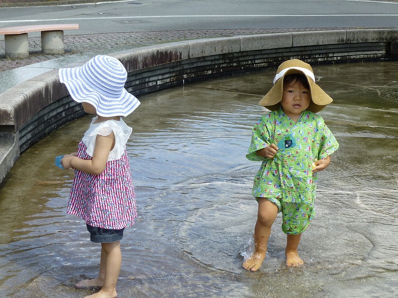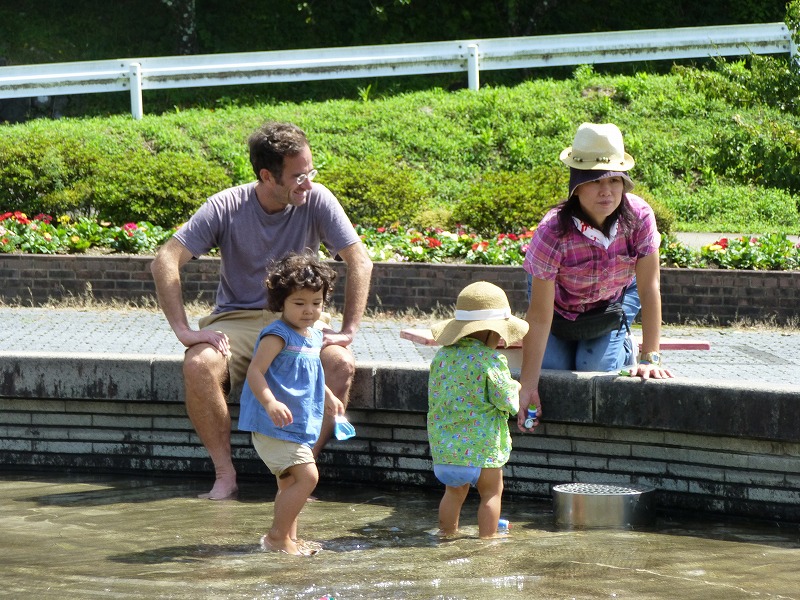 13組の親子が参加しました。 芝生広場に5ケ所のポイントが設けてあり、台紙のヒントを見ながらアンパンマンシールを探しました。 最後に噴水のポイントでシールを貼ると、ペットボトルキャップで作った金魚すくいができるので、子どもたちは、ビショビショになりながらそれを楽しみました。