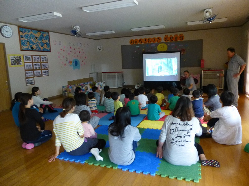 きたこども園年中さん・乳幼児親子・森のようちえん見守り隊が参加し、「私たちが暮らす森にはどんな生き物がいるか」を教えていただきました。