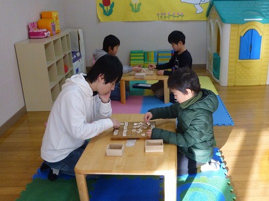 将棋とどうぶつ将棋に分かれて大学生が付き、小学生に教えながら対戦していきました。