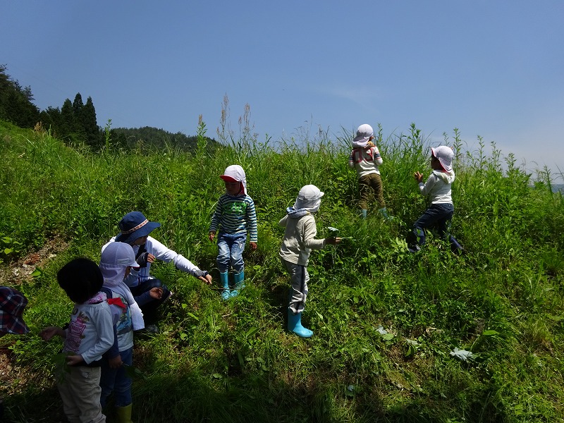 森の案内人:小池聖明さん(観察指導員) きたこども園の年長さんと乳幼児親子3組が参加し、はじめに聖明先生から森へ入る時に気をつけることを教えていただきました。 子どもたちは「葉っぱのビンゴカード」の絵と同じ葉っぱを探しだして、てんとう虫のシールを集めました。 森の中には色々な形の葉っぱがある事を知ることができました。