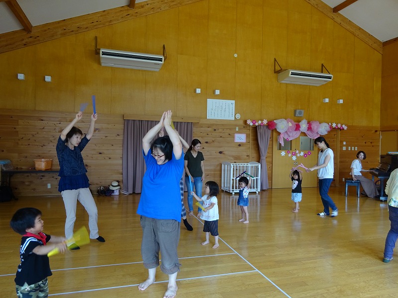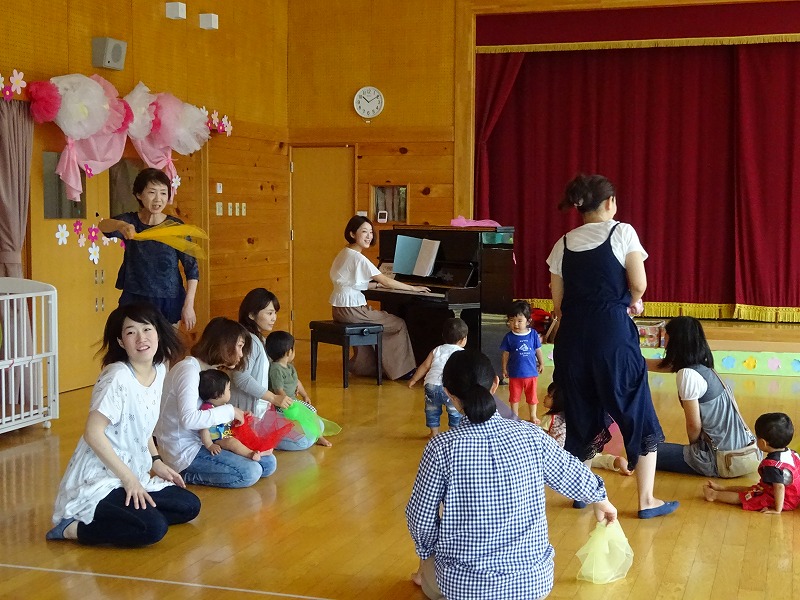 児童館行事「リトミック」に北部乳幼児学級が参加しました。 前半は1〜2歳児クラスで始まり、音楽に合わせてリズム遊びを楽しみました。 後半の2〜3歳児クラスは、ワンランク上のリズム遊びができました。