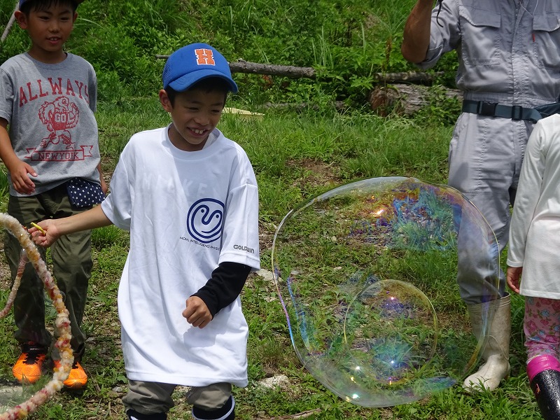 講師:小池明聖先生 「風とあそぼう」をテーマにビニール袋で作ったパラシュート・大きなシャボン玉・森の中でハンモック体験をしました。 子どもたちは風を使って、パラシュートやシャボン玉を楽しみました。