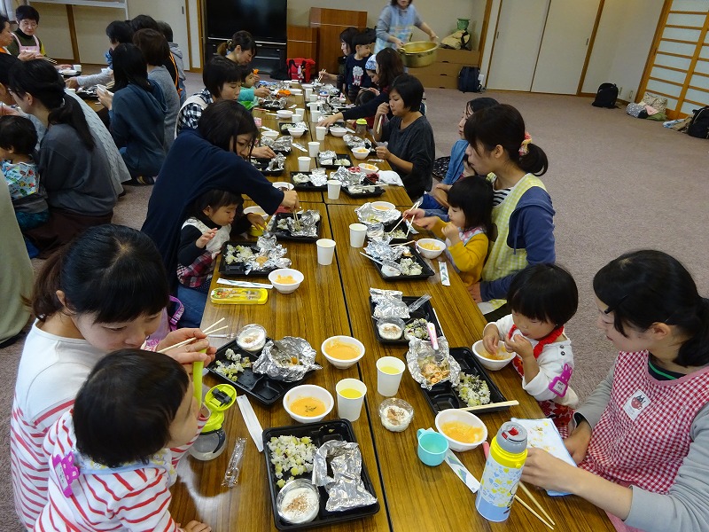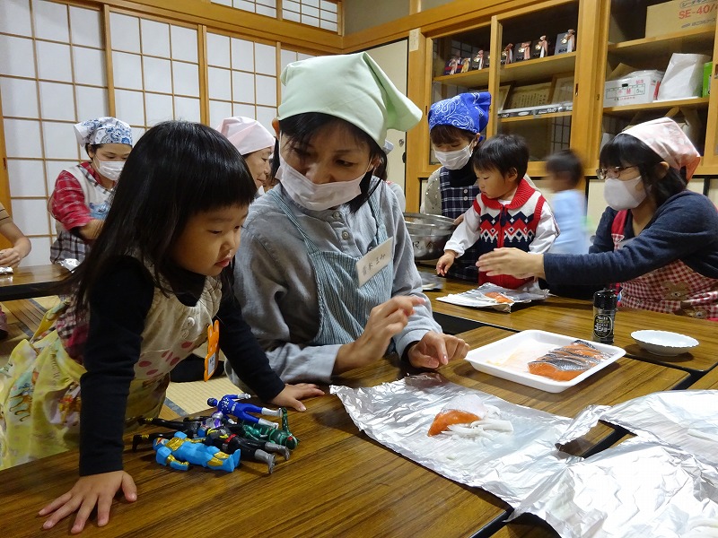 「さつまいもごはん・鮭のホイル焼き・ニンジンスープ・ヨーグルトティラミス」を親子で美味しくいただき「家でも作りたい」という感想をいただきました。