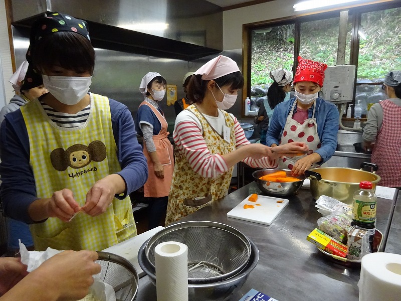 各家庭の塩分濃度について学んだ後、ヘルスメイトさんと一緒に秋の食材を使ったレシピにチャレンジしました。