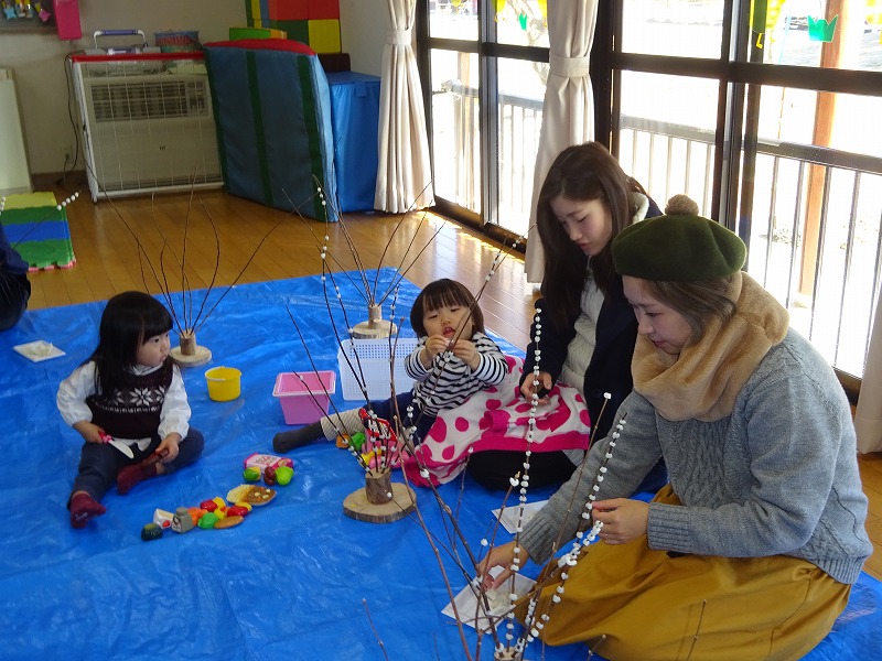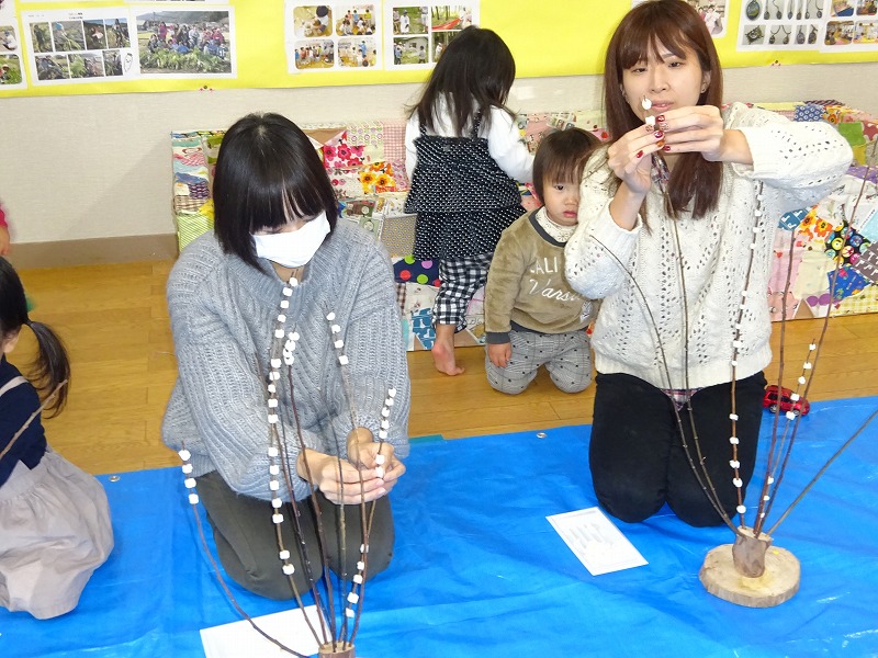 紅白の華やかな花もちに仕上がり、新年を迎える準備ができました。 参加者の中には、岡山県や鹿児島県出身の方もみえ、飛騨地方の伝統文化に親しむことができました。