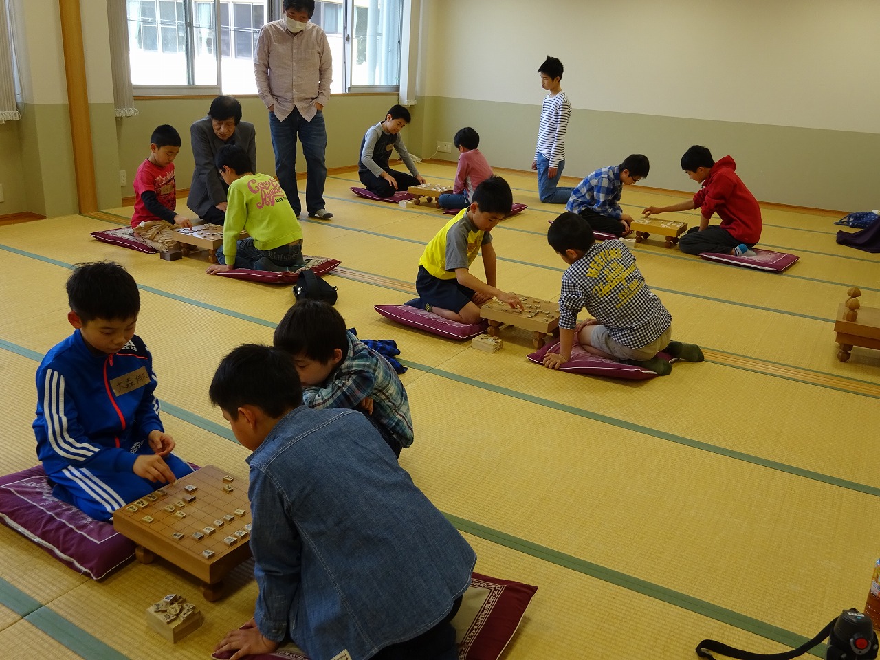 下呂市から集まった小学生11名が真剣な面持ちで対戦し勝つ喜び、負ける悔しさを味わって子ども同士が交流しました。