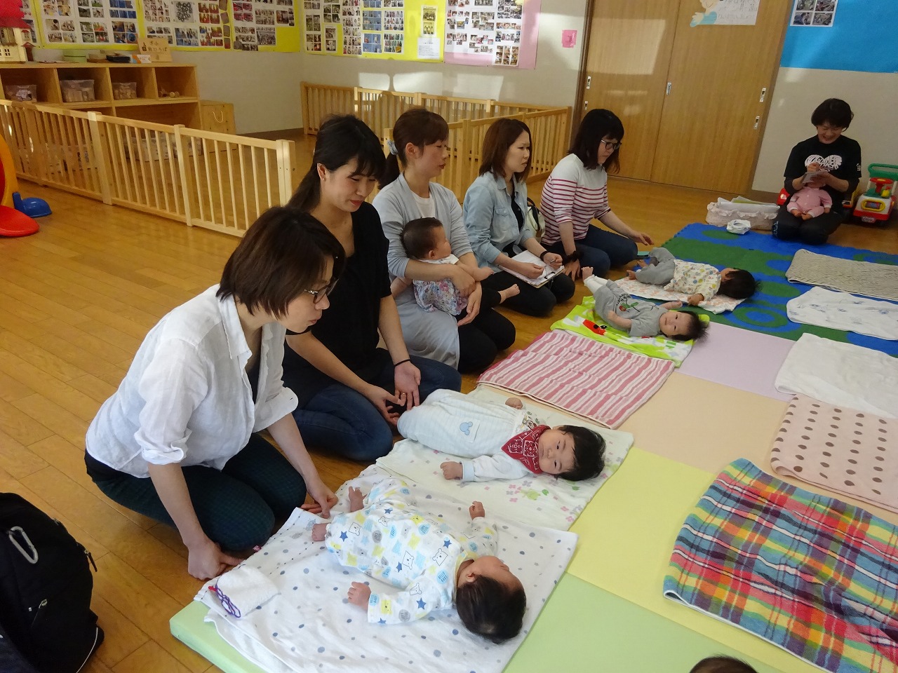 赤ちゃんに話しかけながらマッサージの仕方を習いました。