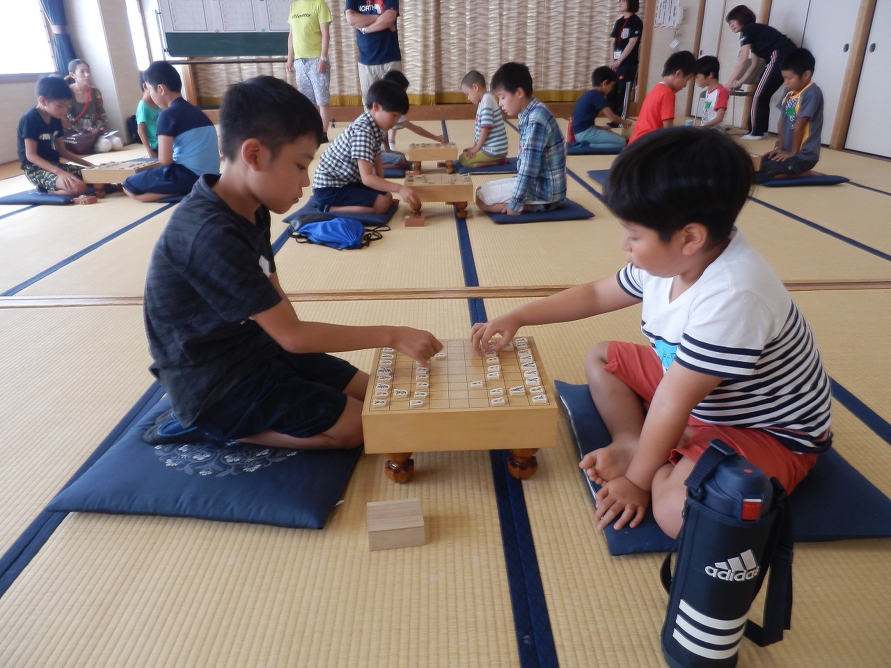 下呂市から集まった小学生14名が真剣な面持ちで対戦し、勝つ喜び、負ける悔しさを味わって子ども同士の交流ができました。