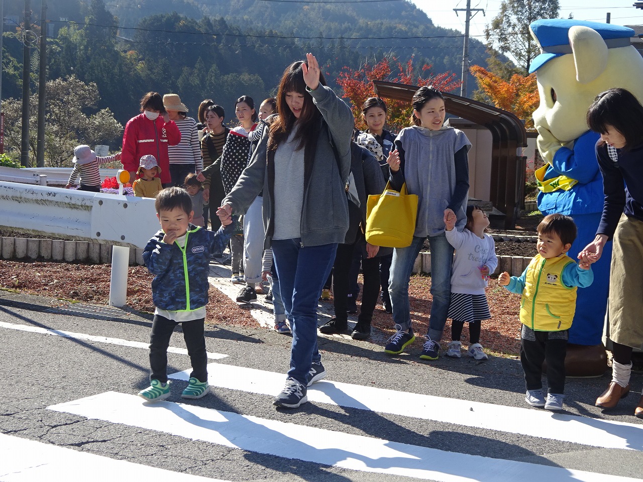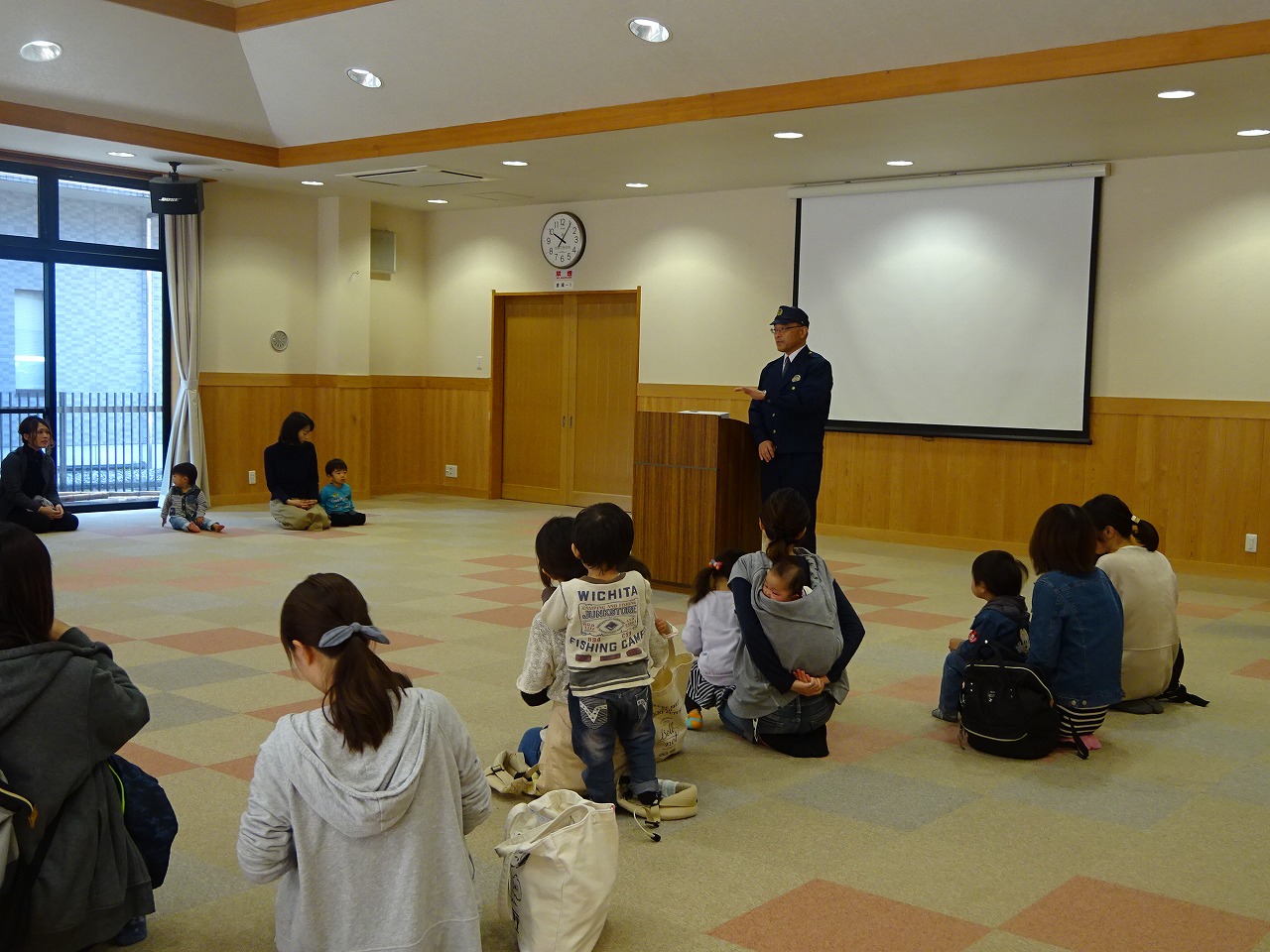 「シートベルト着用」の講話を聞いてから「横断歩道の正しい渡り方」のアニメを見ました。 みなさん交通安全に対する関心が高く、マナーよく話しが聞けました。 ちびっこ警察官に変身して、こあんちゃんと記念撮影!