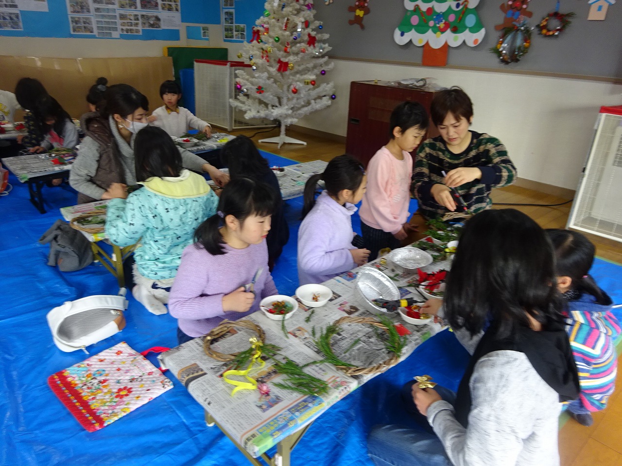 恒例となった「クリスマスリース作り」に小学生約40名が参加しました。