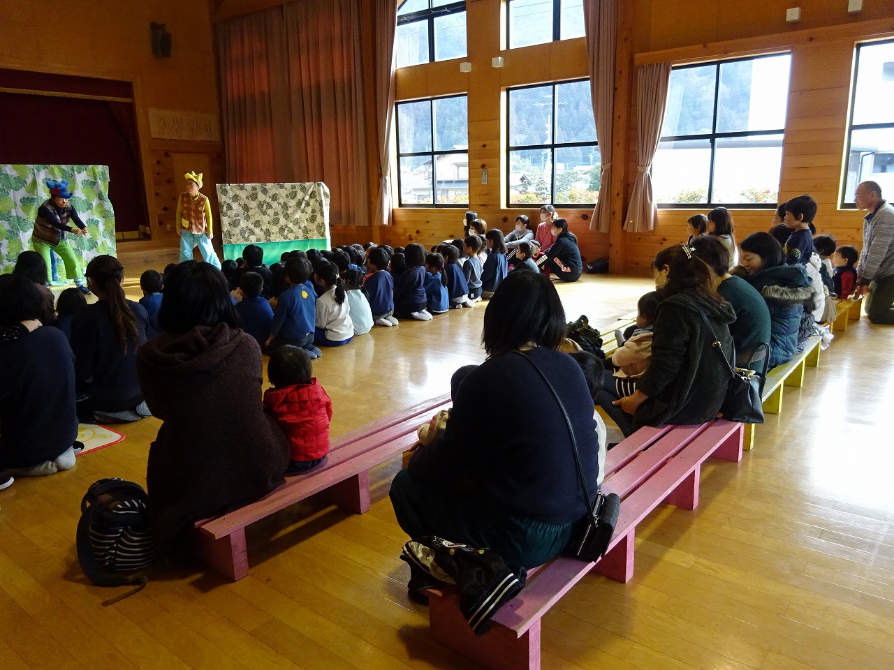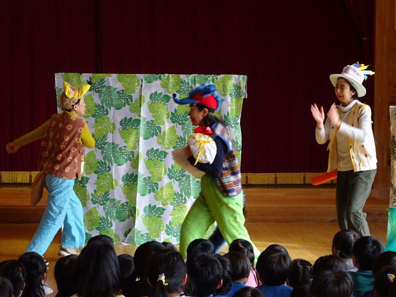 「わがままな狼」の人間劇をこども園の園児たちと乳幼児親子らと一緒に鑑賞しました。