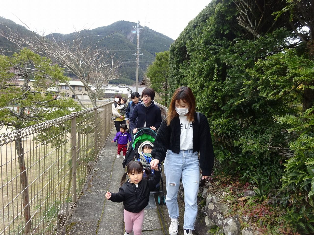 雪が舞う寒い日でしたが、北児童館の周辺を親子で散策しました。