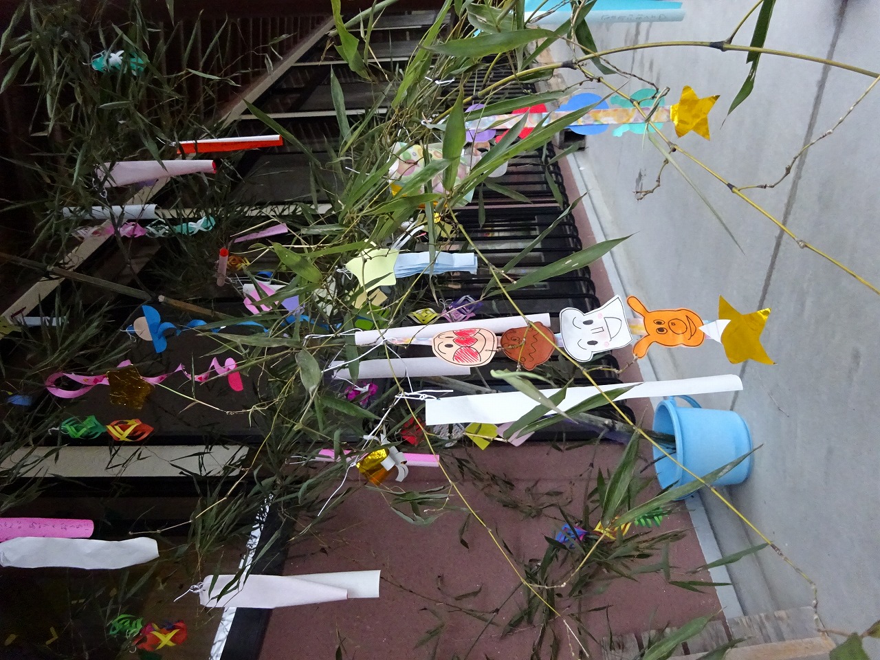 みんなの願い事が飾られ、七夕の準備万端でしたが、豪雨により忘れられない7/7になってしましました。