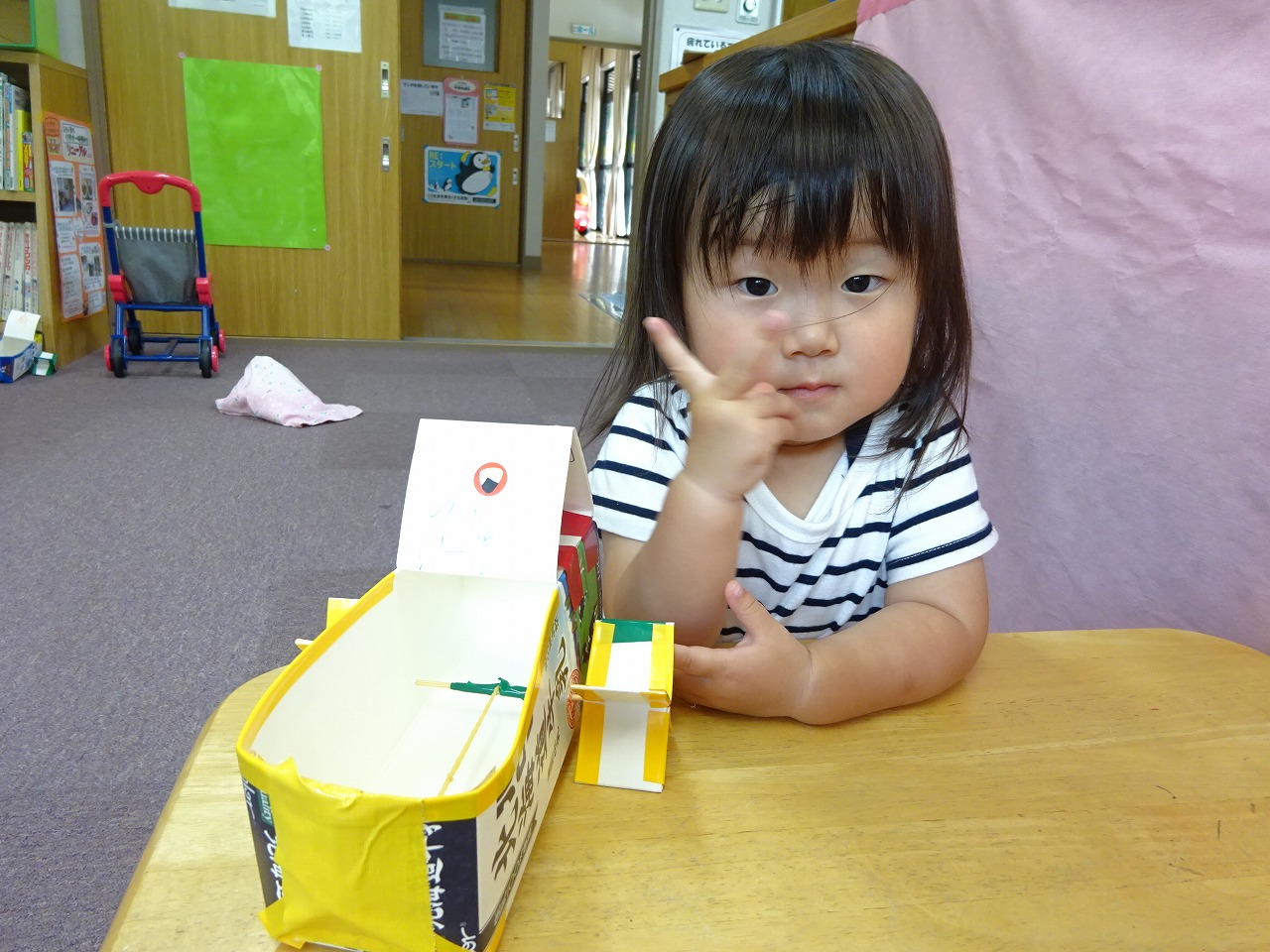 つくって遊ぼう7月は水遊びにも使えるパタパタ船をつくりました。 期間中20組の参加があり、個性豊かな船を作り上げ満足!!といった表情で帰っていくお子さんたちが印象的でした。 持ち帰った船はお家で水遊びに使ったり、お風呂でパタパタ泳がせたりととっても楽しく遊んでくれたようでとても嬉しかったです。
