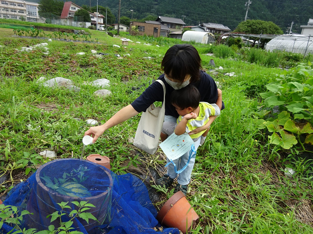 キャラクターの描いてある小さなコップで畑の野菜に水をやってくれたり、大きな草を抜いてくれたり、コロナでいろんな制限や我慢のある中の野外行事に「とっても楽しかった!!」と感想を伝えてくれて、私たちもとっても嬉しかったです!!