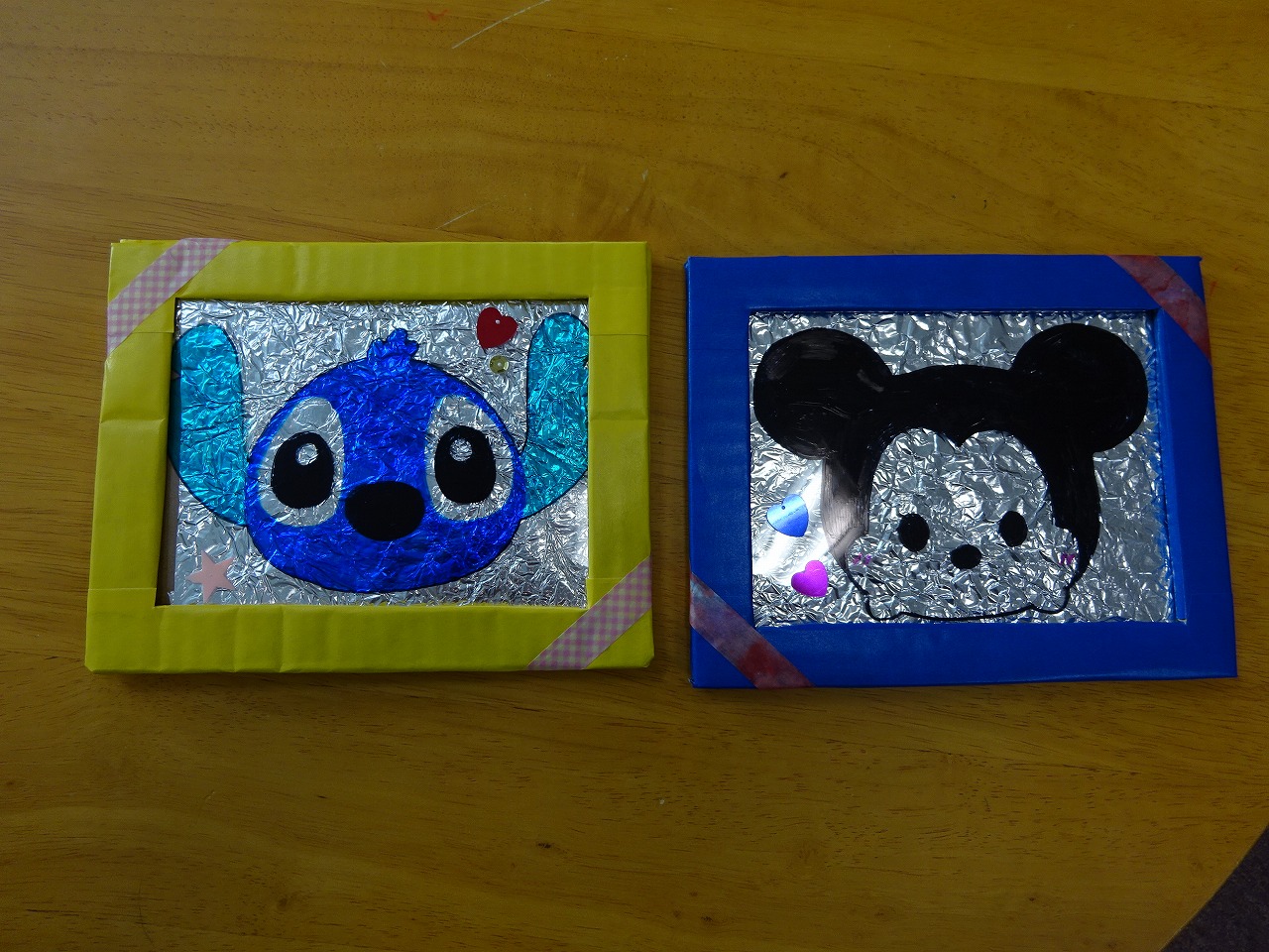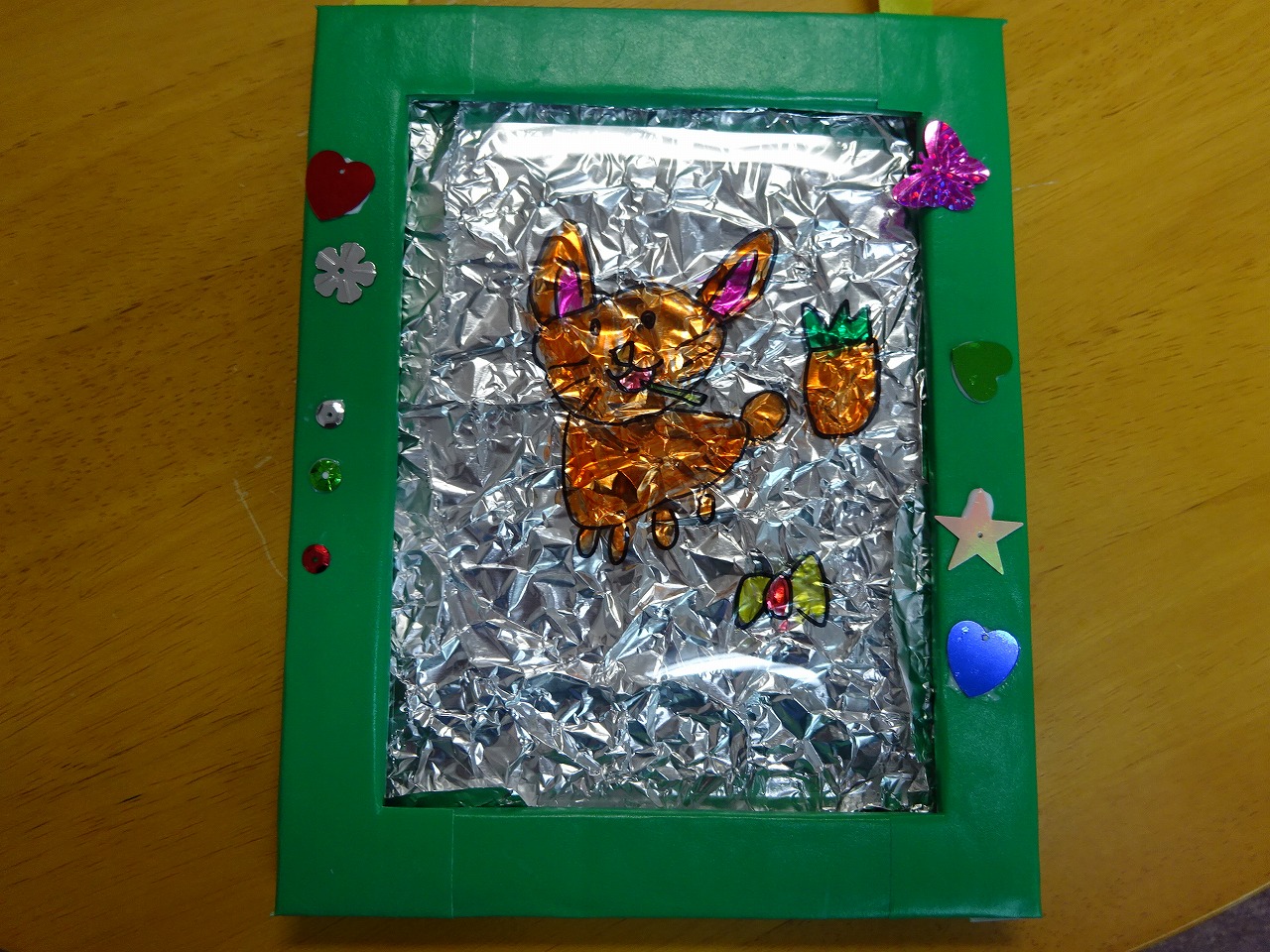 小学生夏休み企画「キラキラステンドグラス」 今年度は感染症予防のため、みんなで集まっての企画ができない中、夏休みに家庭で作れる製作キットを 準備しました。児童館に親子で出向いて作ったり、家庭に持って帰り作ったりと様々でしたが、家庭に持ち帰ったお子さんからは後日「素敵な作品ができた!!」と報告があったりと、参加してくれた皆さんからの嬉しい話が聞けました。参加者は少なかったけれど、普段学校で忙しい小学生の皆さんに会えた夏は職員も嬉しい夏でした。また何かの形で企画できたらと思っています。
