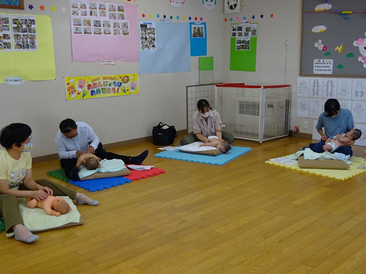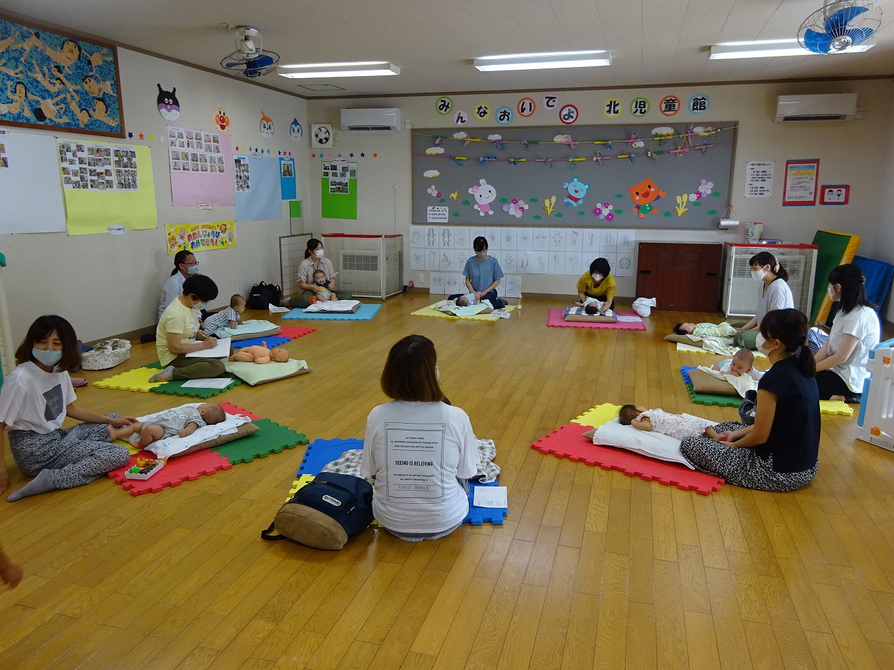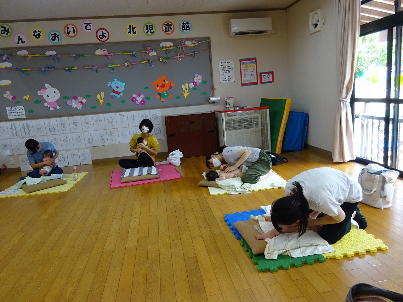 9月4日(金) 今回初めてという方も多い中、ベビーマッサージの時間が親子の優しい触れ合いを楽しむことができた1時間だったように思います。 お母さんの優しい声に反応する赤ちゃんの穏やかな声や表情にとても癒されました。 コロナで外に出ていなかったといわれる方もある中、ベビーマッサージを通しての交流の場はとても大切だと感じています。 北児童館では、ベビーマッサージを毎月第1金曜日に行っています。初めての方も初めてではない方もぜひ、交流の場として参加して頂けたら嬉しいです。