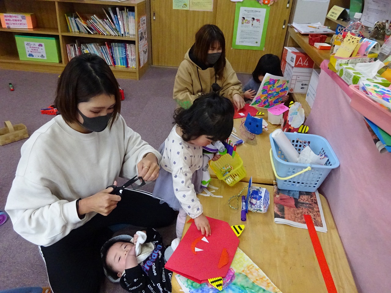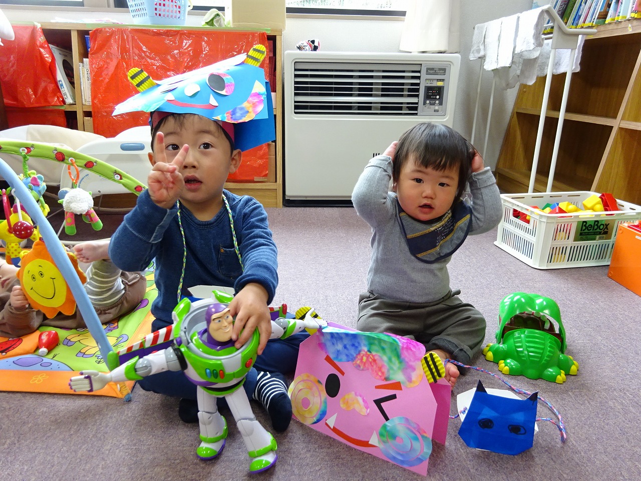 1月18日〜1月29日までの2週間で『鬼のお面&豆入れ作り』を行いました。 沢山の親子の方の参加があり、お母さんとお子さんで素敵なお面や豆入れが完成しました。 2月2日の節分に親子で作ったお面をかぶって、悪い鬼を退治するよ!!と、とっても頼もしくどの子も持ち帰っていきました。