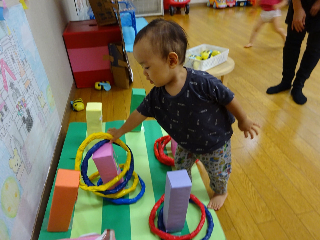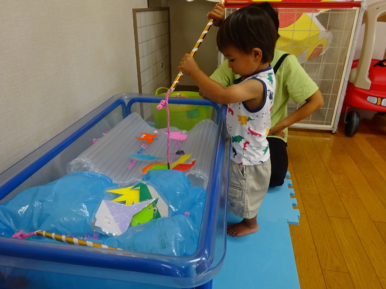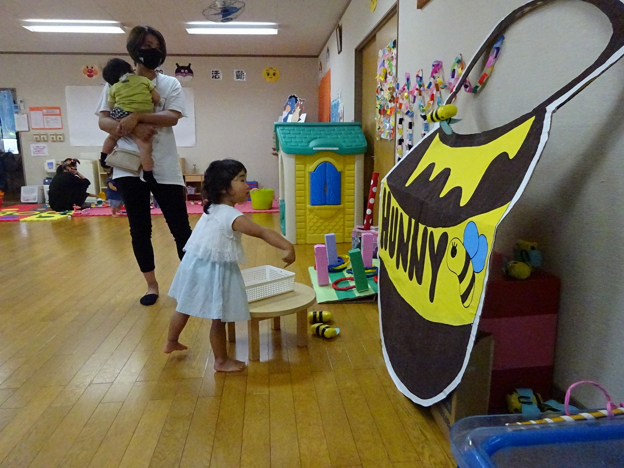 8月に乳幼児学級で行う予定だったコーナー遊びを、児童館でいつでも楽しんでいただけるように 準備しました。輪投げ、魚釣り、プーさんのハニーポットに蜂のボールを投げるコーナーがあり、 遊びに来てくれた子どもたちは苦戦しながらも楽しそうに挑戦しています。