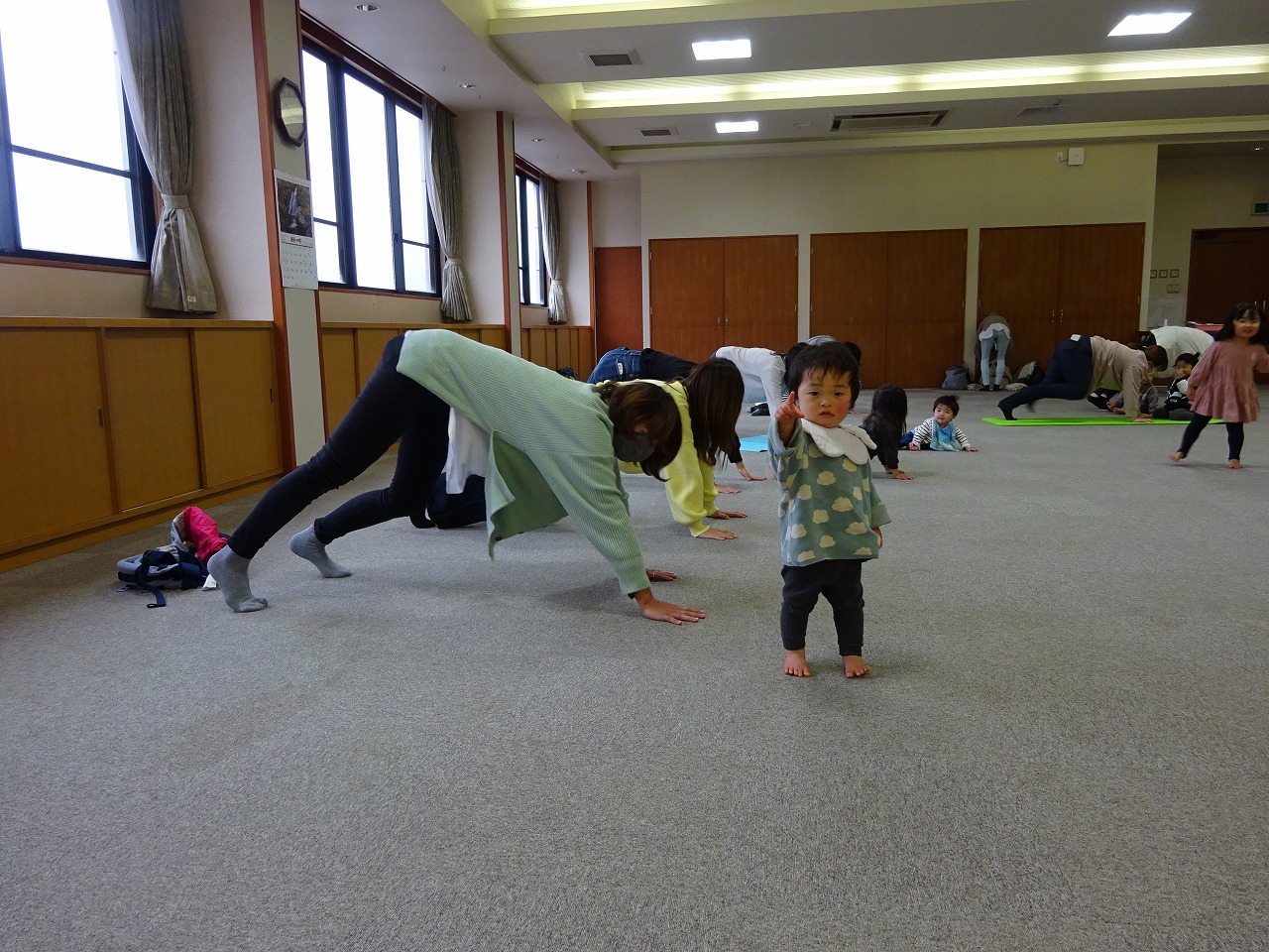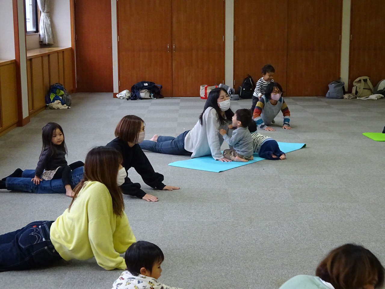 近藤麻有さんを講師にお招きし、親子ヨガを行いました。 親子でスキンシップをとりながら、絵本や歌に合わせて楽しく身体を動かすことができました。 凝り固まった身体をほぐしリフレッシュになりました。 家でもできる簡単な動きなので暇を見つけてやってみたいなと思いました。 講師の先生の優しい声に癒されました。 などの感想があり子どもだけでなくお母さん方も一緒に楽しめる活動になりよかったです。