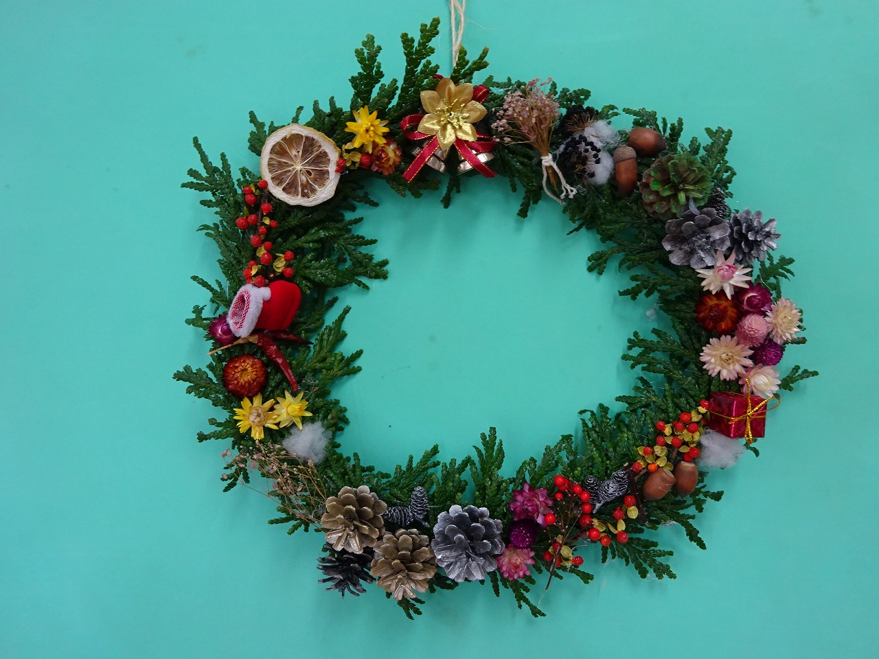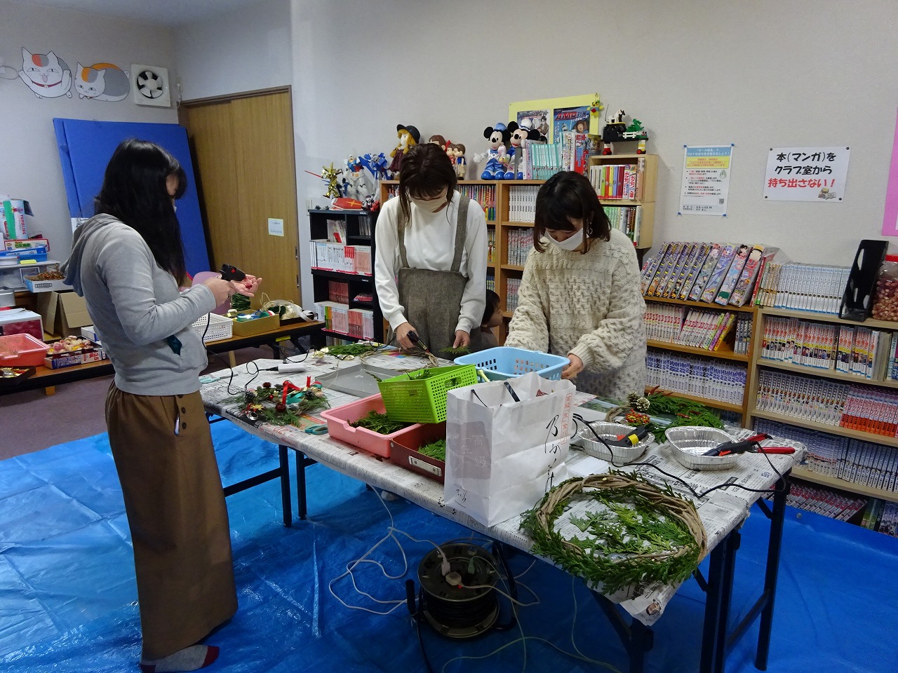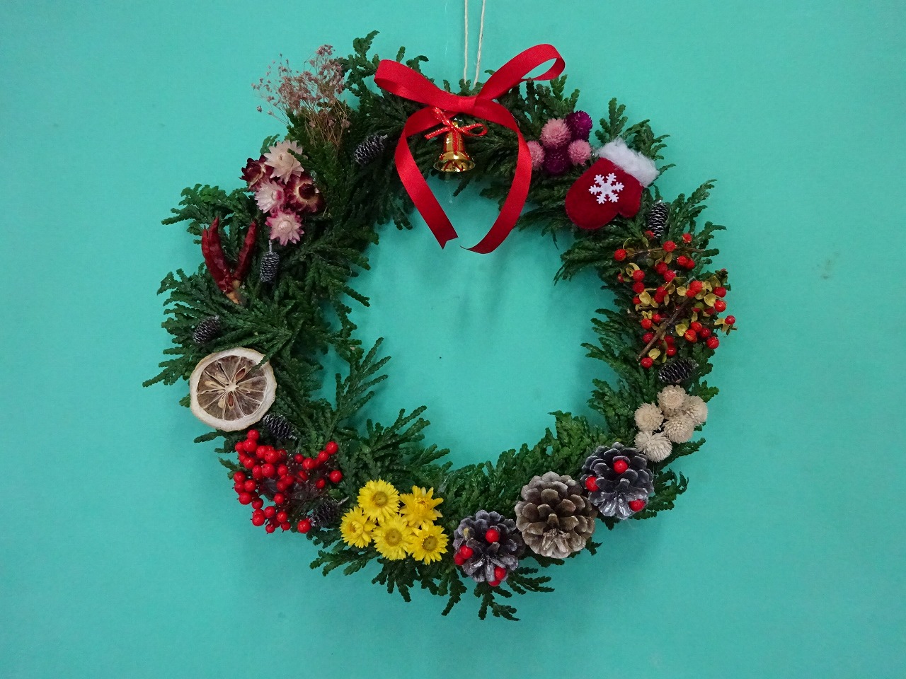 12月14日から12月16日までの3日間クリスマスリース作りを行いました。15組の親子の参加がありました。 リースの材料には、貝細工、松ぼっくり、かすみ草など自然物をたくさん用意しました。お母さんたち一人ひとりが違うアイデアでとっても素敵なリースが出来上がりましたよ。「家に飾るのが楽しみです!」と、どの方も満足いく作品ができたようです。