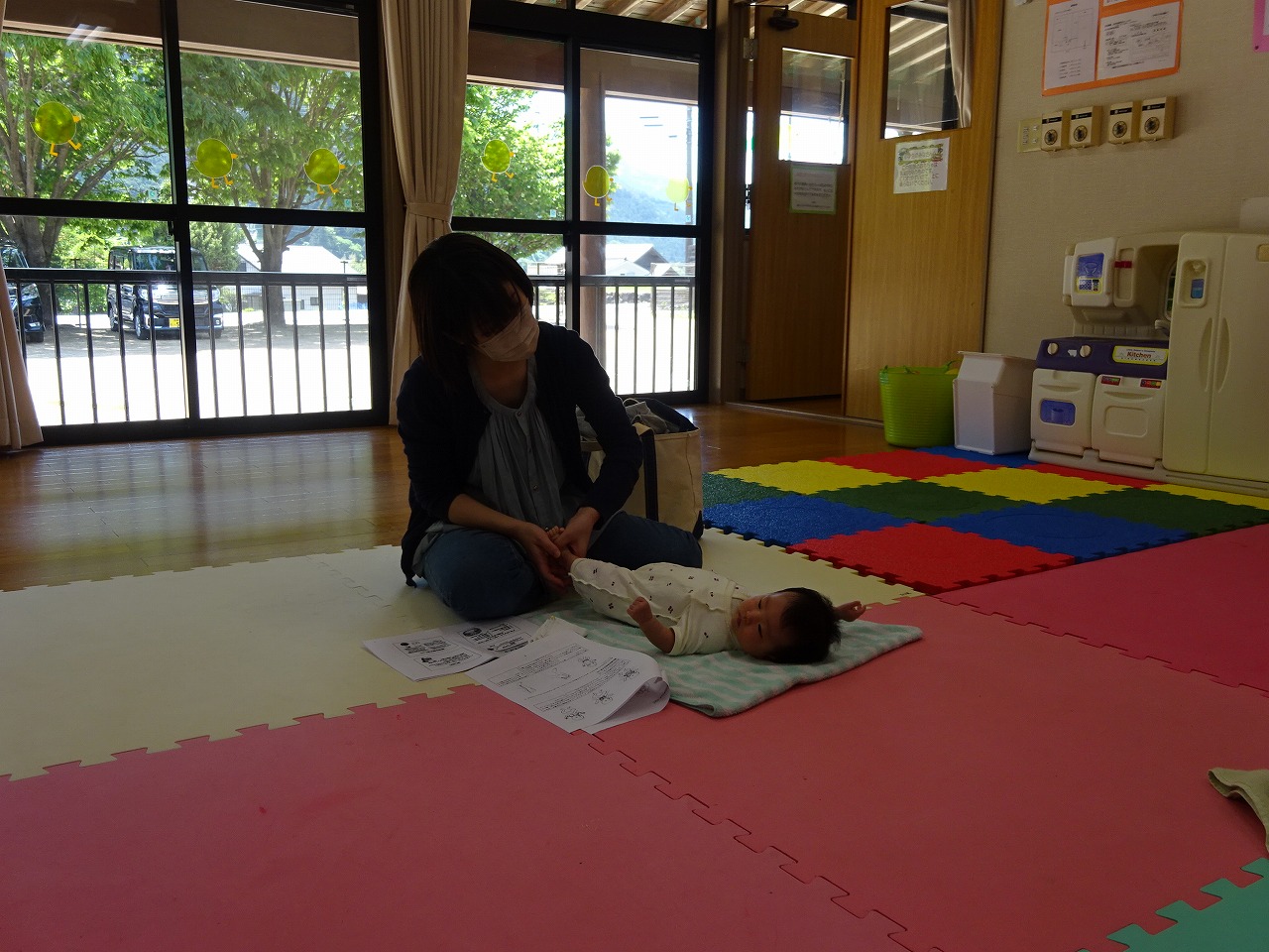5月23日(月)ベビーマッサージを行いました。今月は1組だけの参加となりましたが、先生と1対1で妊娠、出産、産後の事などいろんなお話しをしながら、ゆったりと行うことができました。赤ちゃんもニコッと笑ったり、声を出したりととっても気持ち良さそうで、私たち職員も癒しの時間となりました。 次回は6月27日(月)を予定しています。予約制ですので参加されたい方は北児童館までご連絡ください。