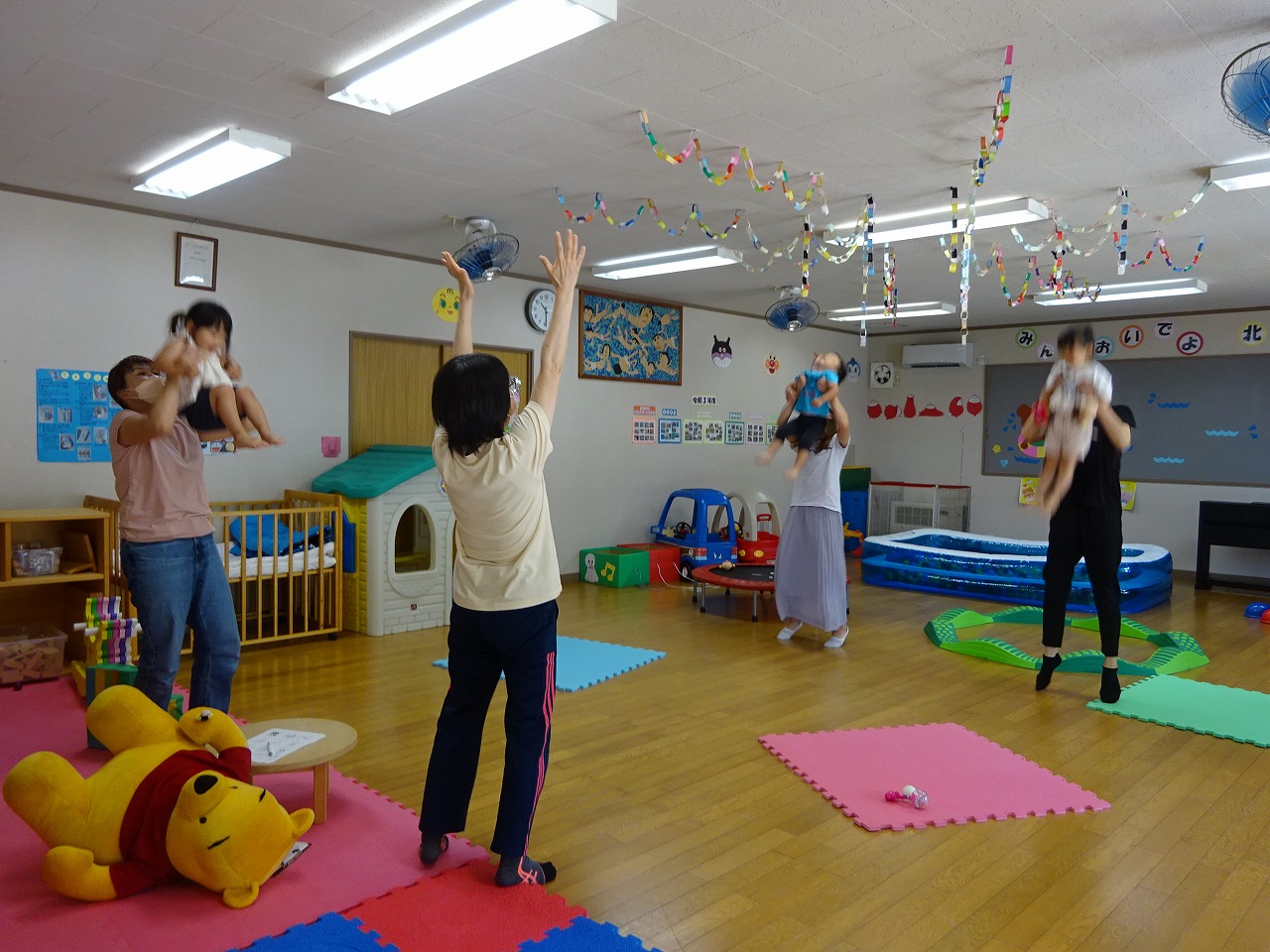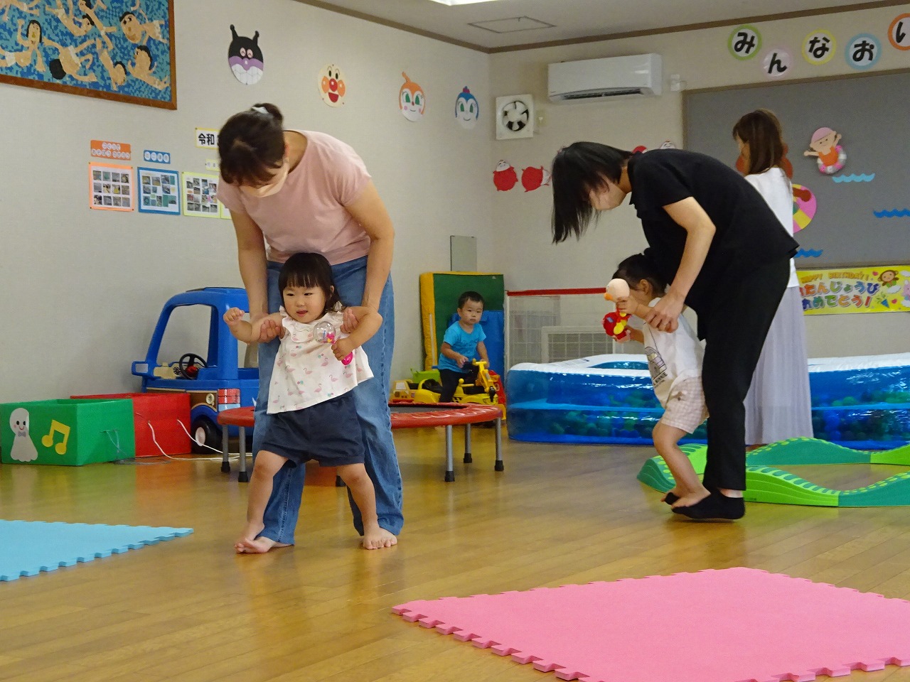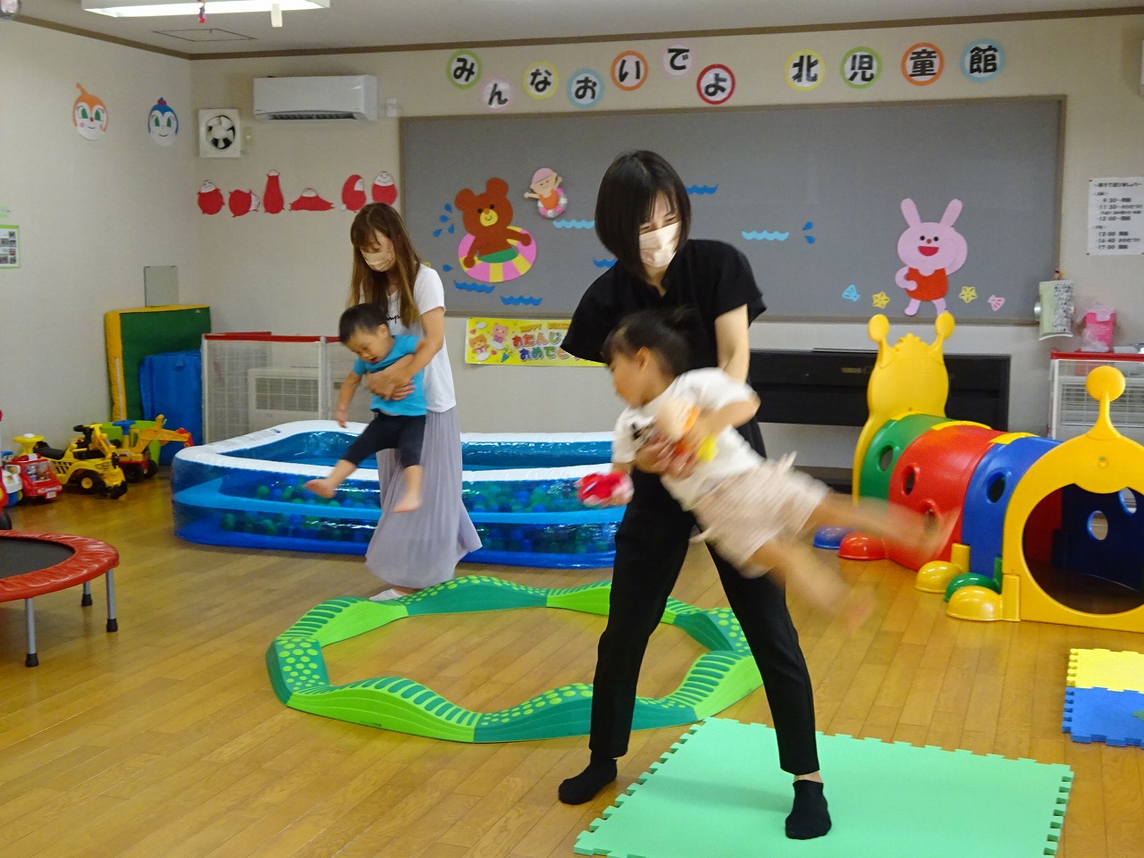 7月11日(月)みなみこども園さくらんぼ教室の堀田暢子先生を講師にお招きし、ママの勉強会「子どもの見方・大人の関わり方」を行いました。始めに我が子の心配な所・すきな所をそれぞれお母さんたちに話してもらいました。親だから我が子が心配なのは当たり前。でも周りの子と比べるのではなく、半年前の我が子と今を比べ成長を喜んでほしいと話されました。その後は親子でふれあい遊びを行いました。どの子もとっても楽しそうにお母さんと遊ぶ姿が微笑ましかったですよ。お家で簡単にできるふれあい遊びを児童館でも紹介しています。(ホールに掲示してあります)いつでもどこでもできるのでぜひお家でもちょっとした時間にやってみてくださいね。
