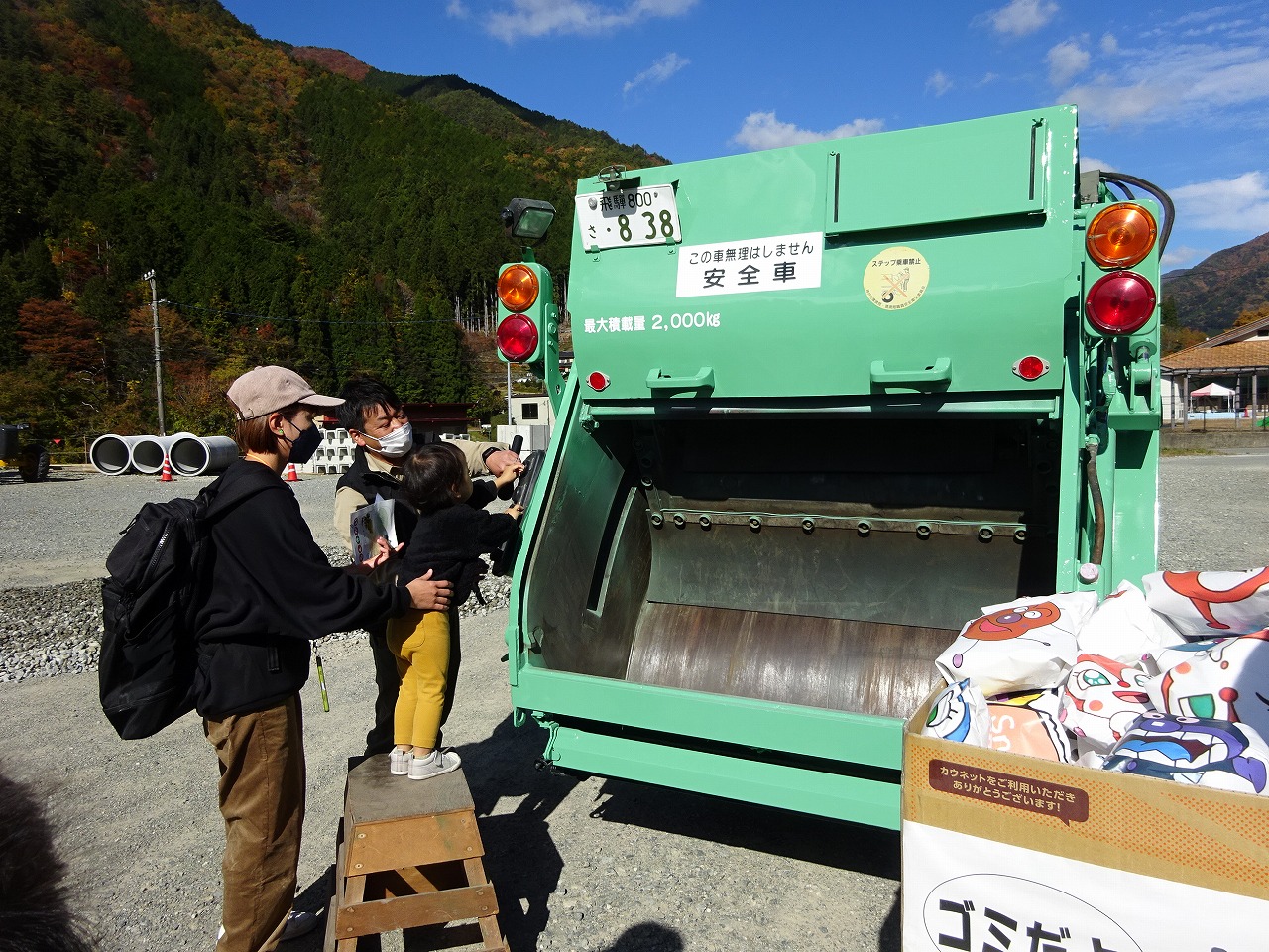 始めに、重機がどんな仕事をしているのか実際動かして見せてくださいました。近くで見る迫力満点の重機にちょっとびっくりしながらも、大興奮の子ども達でしたよ。その後は馬瀬建設さんが用意して下さったシールラリーを行いました。アンパンマンのボールをゲットしたり、ごみ収集車の中へごみをぽいっと投げたり、最後には素敵なプレゼントもいただきました。重機には自由に乗ることができ、クラクションを鳴らしてみたり、親子で写真を撮ったりして楽しい時間を過ごしました。馬瀬建設の皆さん、楽しい企画をありがとうございました。