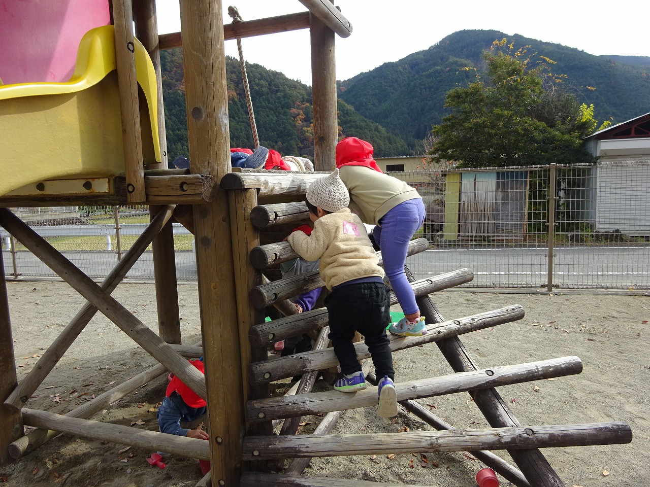 11月17日(木)園庭開放を行い6組の親子の参加がありました。兄弟がいる子はお兄ちゃん、お姉ちゃんの姿を見つけると嬉しそうに駆けより一緒に遊ぶ姿もありましたよ。気温も低すぎず、砂場や遊具などで思い切り体を動かし楽しむことができました。