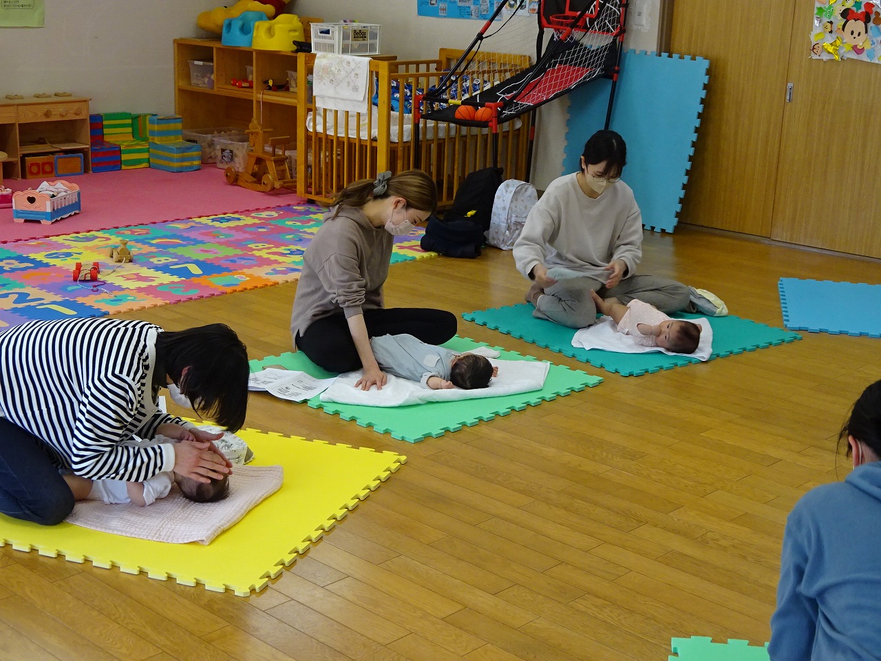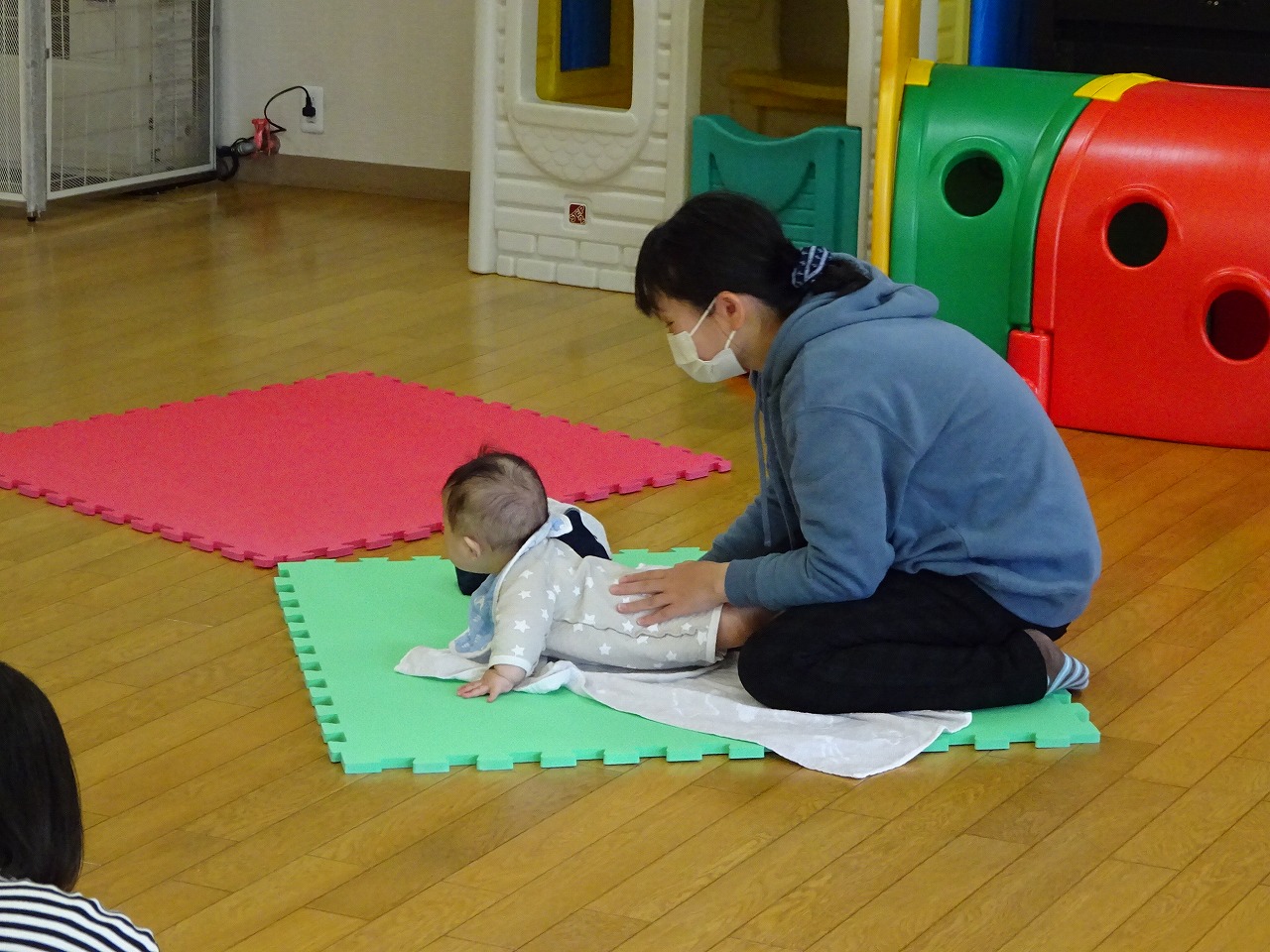 3月20日(月)ベビーマッサージを行い5組の参加がありました。月齢が同じくらいの子ばかりだったので成長の様子が同じくらいだったり、お母さん同士も話も弾んでいるようでした。住んでいる地区が違っても同じくらいの子どもをもつお母さんと知り合える機会があるのはとてもいいことだなと改めて感じました。 来年度(4月から)はベビーマッサージは毎月第4月曜日に行います。(日にちが変更する場合はおたよりやホームページなどでお知らせします)人数把握の為予約をしてください。たくさんの方の参加をお待ちしております。