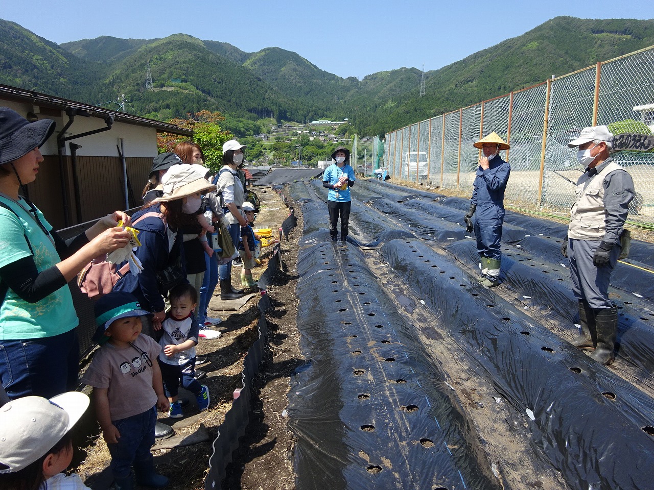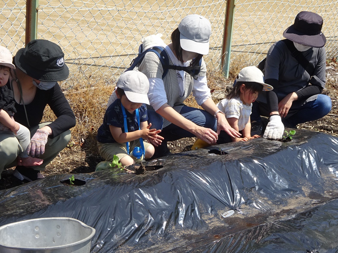 5月16日(火)おひさま農園の農園開きがあり、8組の親子がとうもろこしの種まき、ヤーコンの苗植えをしました。今年度から萩原子育て支援センター・北児童館合同で農園活動を行います。 畑の先生に教えていただきながら、小さな手で土に触れ、種や苗を植え「大きくなぁれ」「おいしくなぁれ」と願いを込めて水やりをしました。これから親子でお世話をし、生長を楽んでいきたいです。