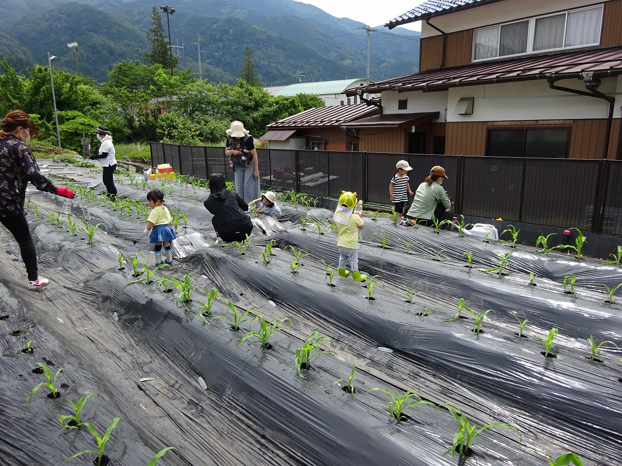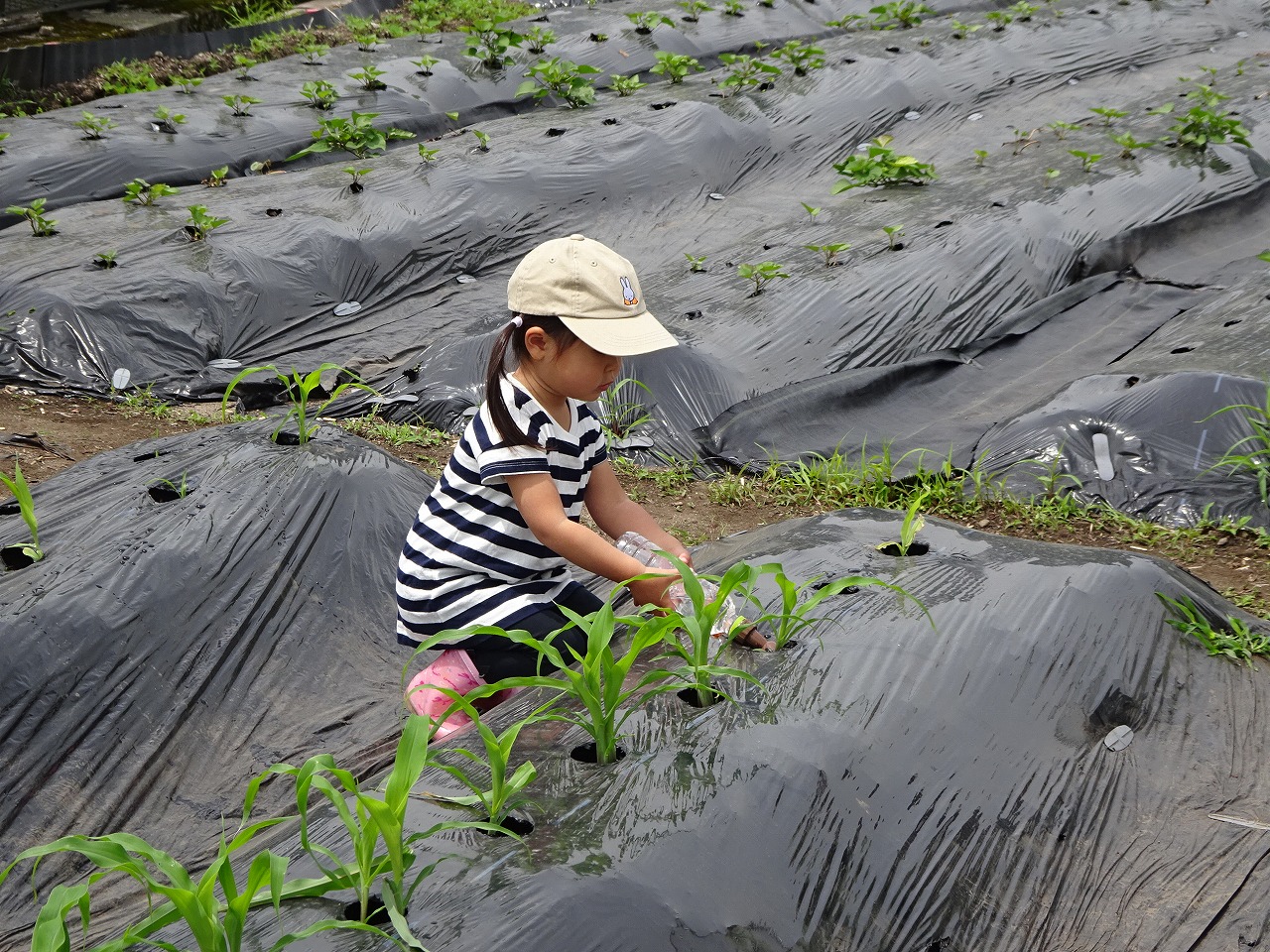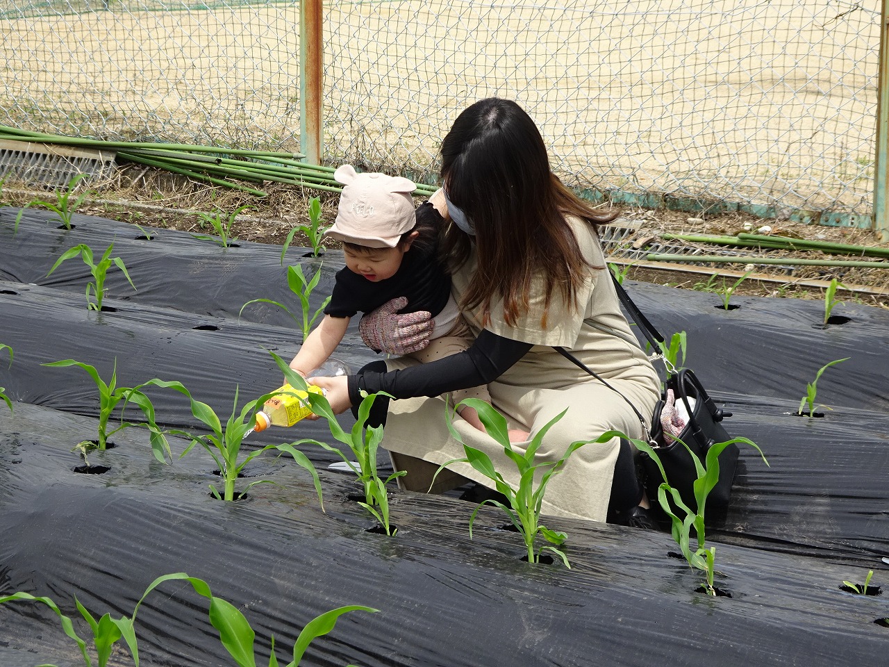 6月6日(火)、おひさま農園dayを行い、10組の親子が参加しました。 とうもろこしもヤーコンもまた1週間で大きくなっていました。今日は草取りやペットボトルのジョウロで一つひとつ丁寧に水をあげたりしてお世話をしてくれました。中には何度も水を汲んできてたくさんあげてくれる子もいて、愛情たっぷり育っていますよ。