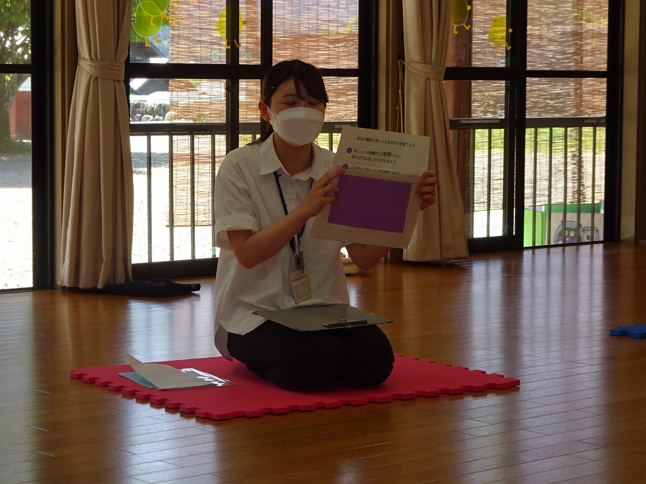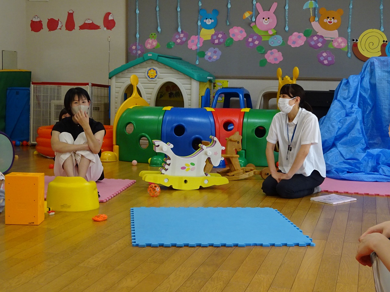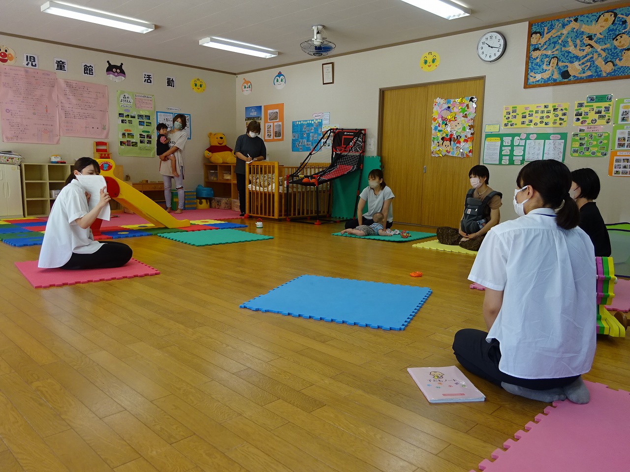 7月6日(木)、ミニ講座『保健師さんの話』を行い、4組の親子の参加がありました。 トイレトレーニングを中心とした内容でしたが、入園前の夏でトイレトレーニングを考えていたり、いつからトイレトレーニングを始めようか悩んでいる方もみえたのでとても良い機会となりました。また、子育ての悩みや生活リズム、食事等専門的な話がたくさん聞けて、交流ができてよかったと思います。