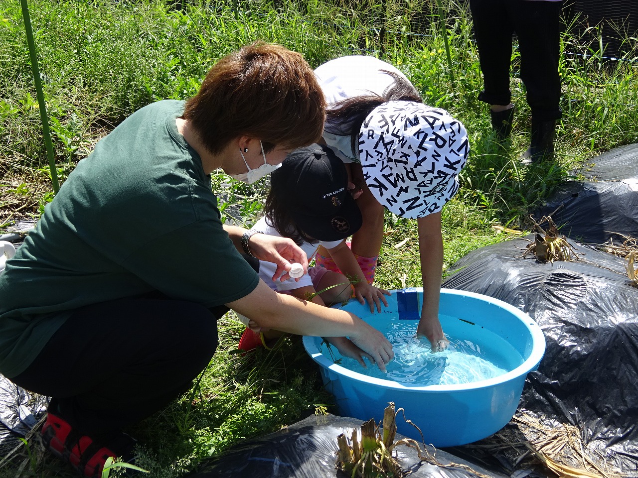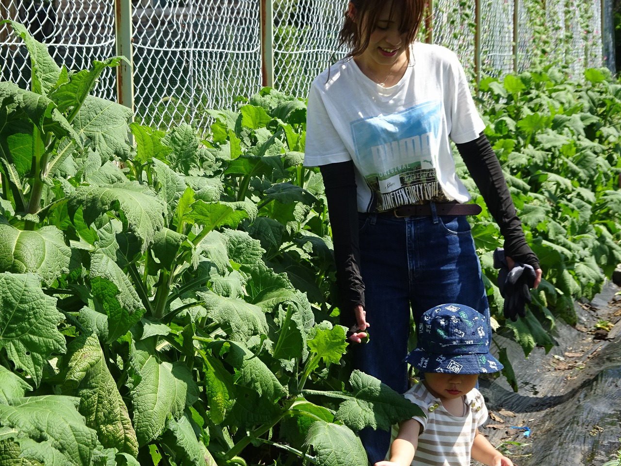 8月22日(火)農園dayを行い、2組の親子が参加しました。とても暑い日でしたが、小学生のお兄ちゃんお姉ちゃんお父さんも一緒に参加してくれました。 子ども達の背丈よりも大きくなったヤーコン。ヤーコンの葉も大きくなっています。みんなで水やりをしてくれたので収穫が楽しみです。