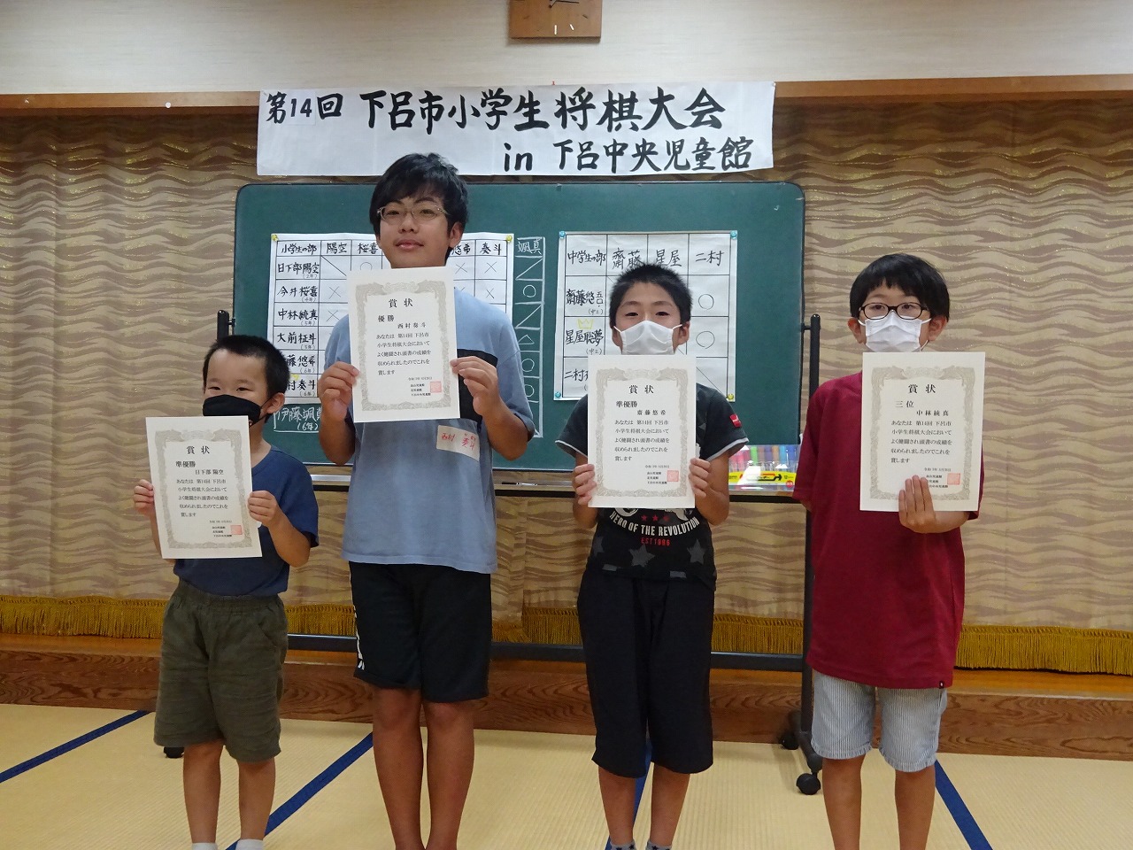 8月25日(土)、コロナ禍を経て4年ぶりの将棋大会開催となりました。小学生7人、中学生3人でリーグ戦を行いました。 〈優勝〉下呂小6年生 〈準優勝〉金山小6年生 萩原小2年 〈3位〉萩原小5年生 どの子も真剣に対戦し、色々な攻め方や守り方を知ることができてとても充実した時間を過ごせと思います。