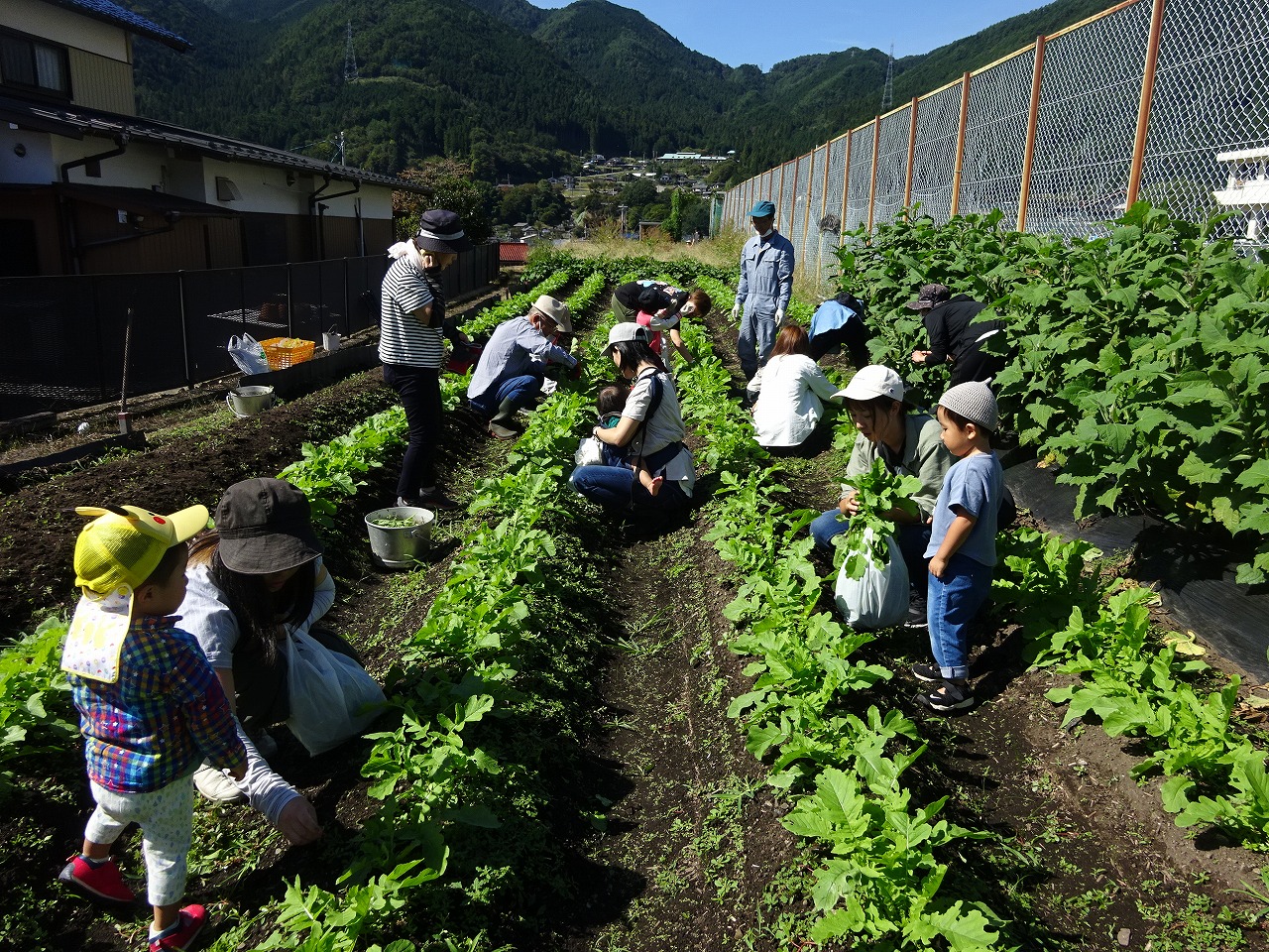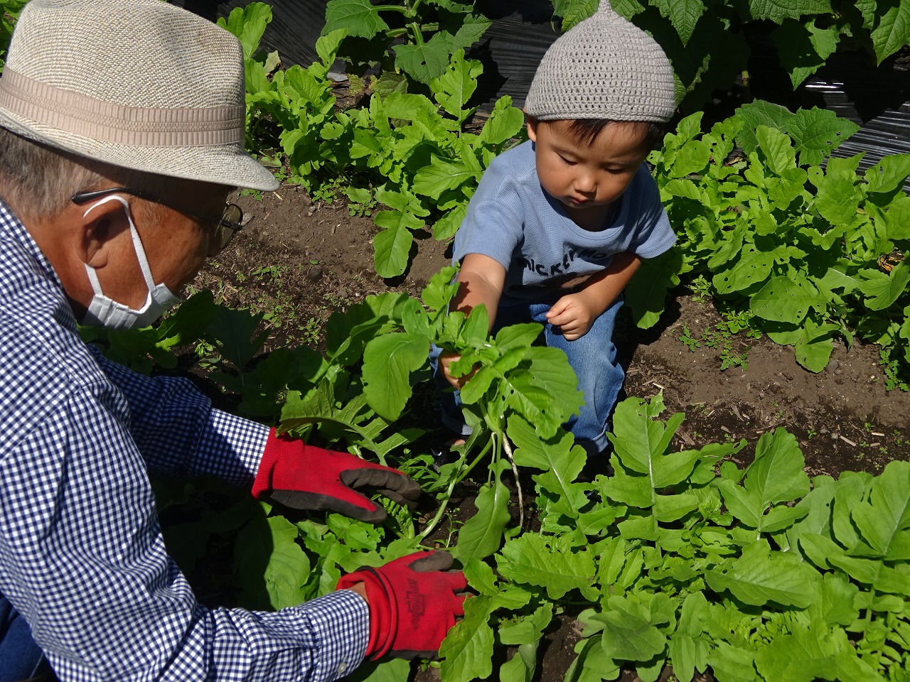 10月3日(火)、農園day『大根の間引き』を行い、10組の親子の参加がありました。 畑の先生に教えていただきながら大根を間引き、コツをつかむとどんどんとれて袋いっぱいとれました。お家で美味しくいただいてくださいね。人参のかわいい芽も出てきました。