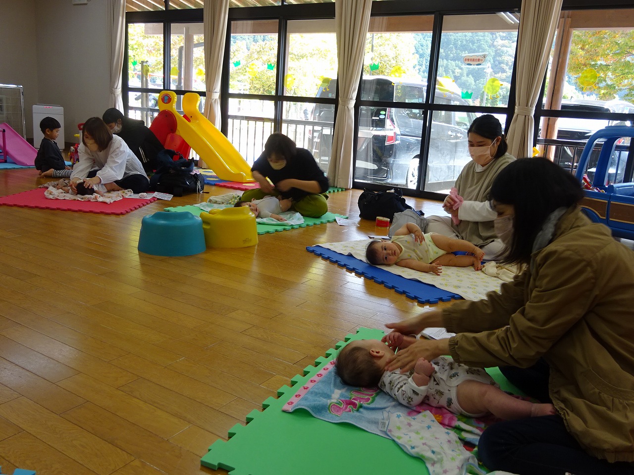 10月23日(月)ベビーマッサージを行い、新しい方を含め6組の親子が参加してくれました。 ずっと家にいると疲れてしまうので、ここへ来るとゆったりとした雰囲気でリラックスすることができ、子育ての相談ができたり他のお母さんたちと話すこともできて気分転換になっているようです。 次回の『ベビーマッサージ』は11月27日(月) 10:00〜 です。