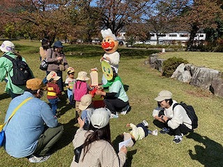 10月25日(水)下呂市内の児童館3施設、支援センター6施設合同企画『飛騨川公園アンパンマンウォークラリー』を行い、70組の参加がありました。地図を見てウォークラリーをしながら様々なミッションに挑戦!最後はみんなでアンパンマンになりきってアンパンマン体操をしました。職員もキャラクターに変身し、大きなお面をつけていたので怖がる子もいましたが、親子で協力してミッションにチャレンジしてくれました。初めての試みでしたがとても喜んで参加してくれました。