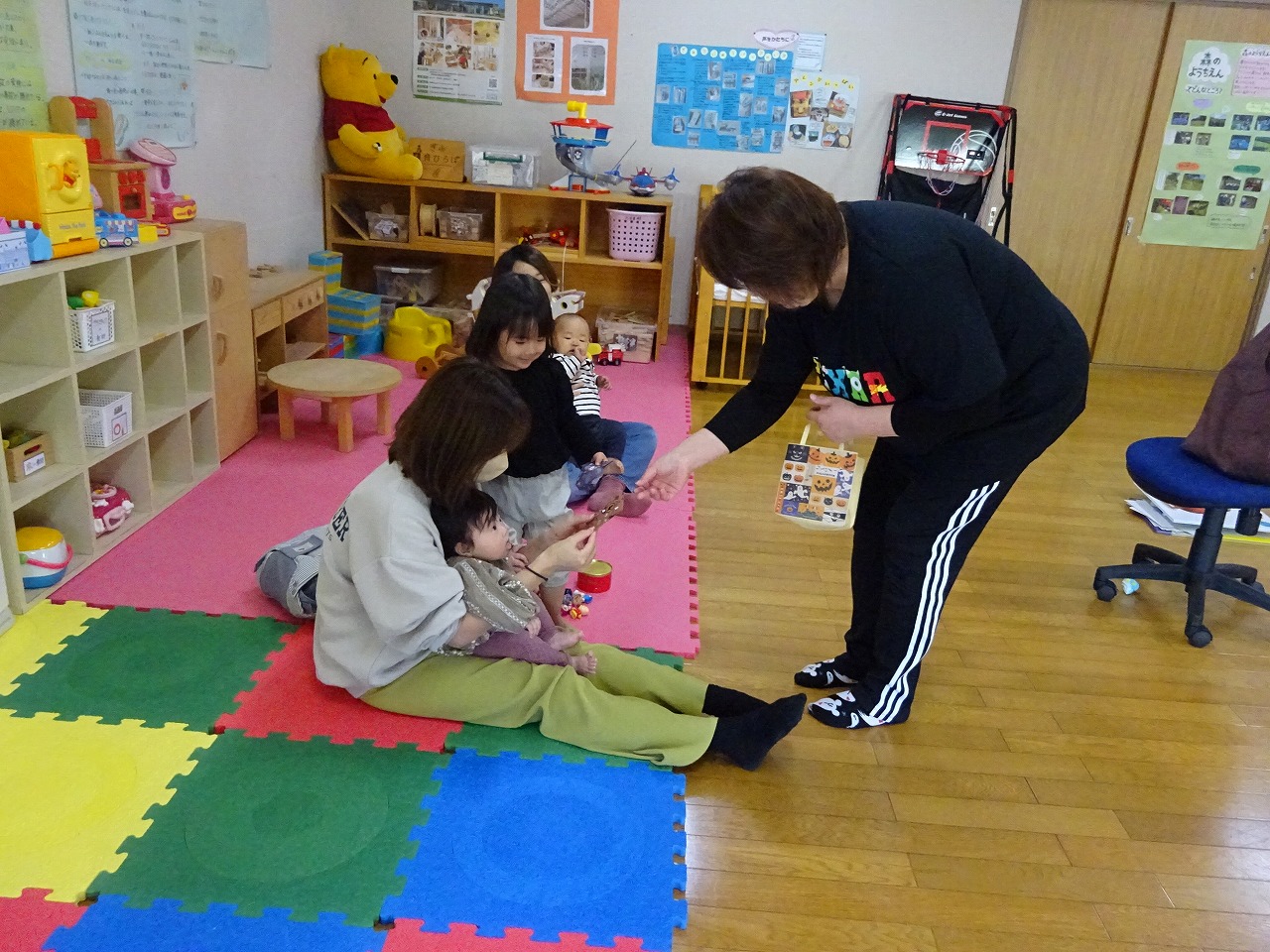 10月26日(木)読み聞かせを行い、2組の親子と13人のくろすけのお友だちが参加してくれました。 たくさん参加してくれたので賑やかでしたが、手遊びや紙芝居が始まると朋子先生の世界に引き込まれ、一緒に手遊びを真似したり、絵本や紙芝居、手品等喜んで見ていました。今月もハロウィンなので素敵なプレゼントがもらえました。 次回は11月16日(木) 10:30〜 お待ちしております。