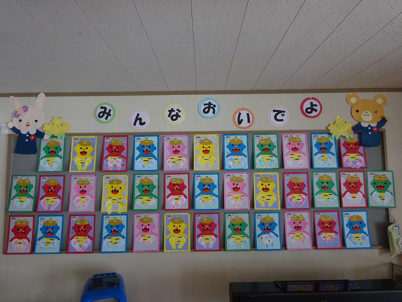 あかおに・あおおに・みどりおになどカラフルな可愛い鬼が完成しました。
