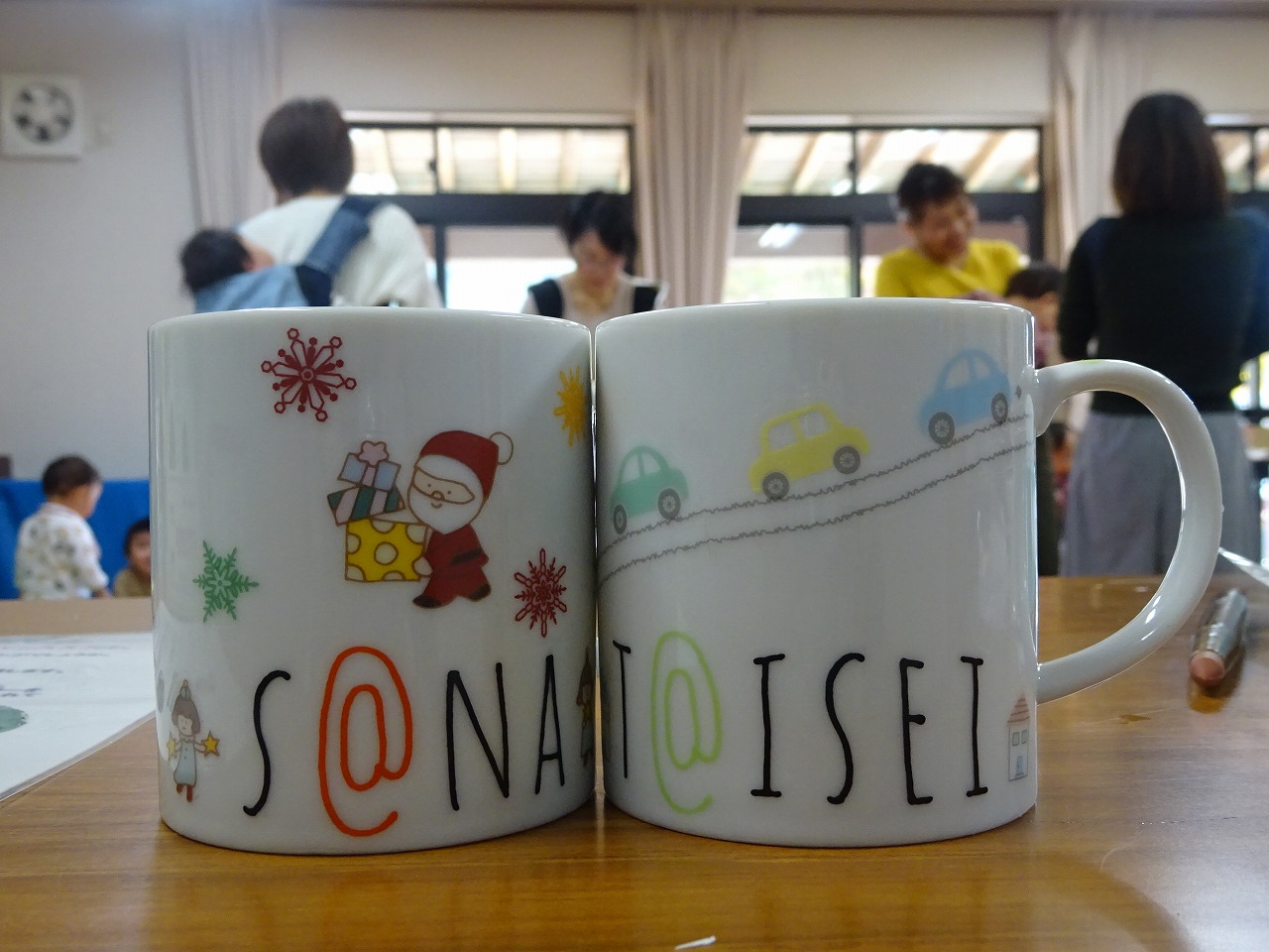 白磁やグラスにシール感覚で使える転写紙を使って自由に絵付けをしました。 |