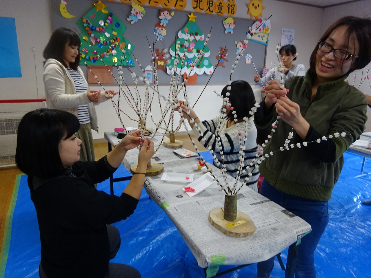 北部の子育て支援施設とのコラボ企画・飛騨の冬の風物詩「花もち飾り作り」に16組の親子が参加しました。 |