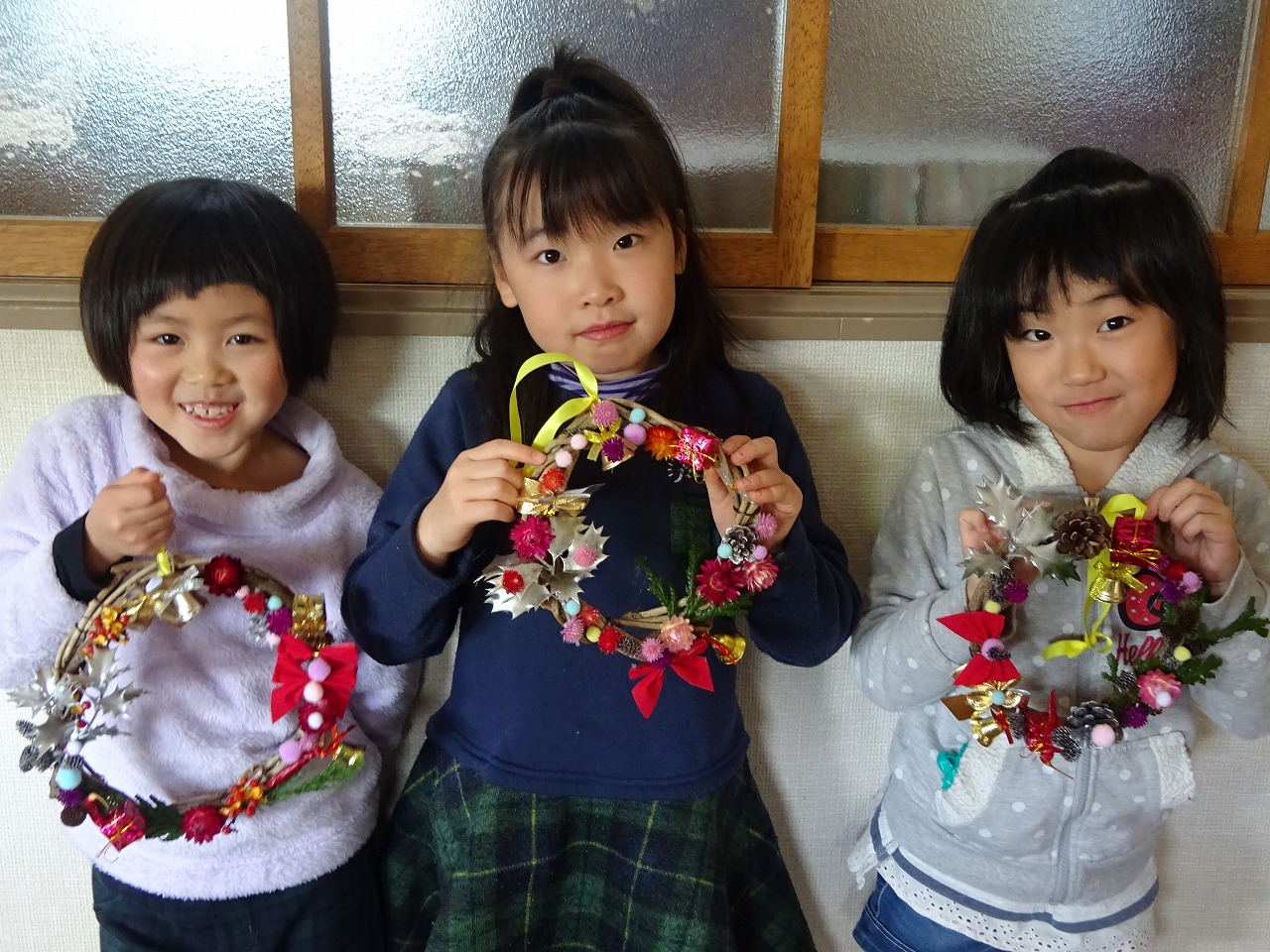 恒例となった「クリスマスリース作り」に小学生約40名が参加しました。 |