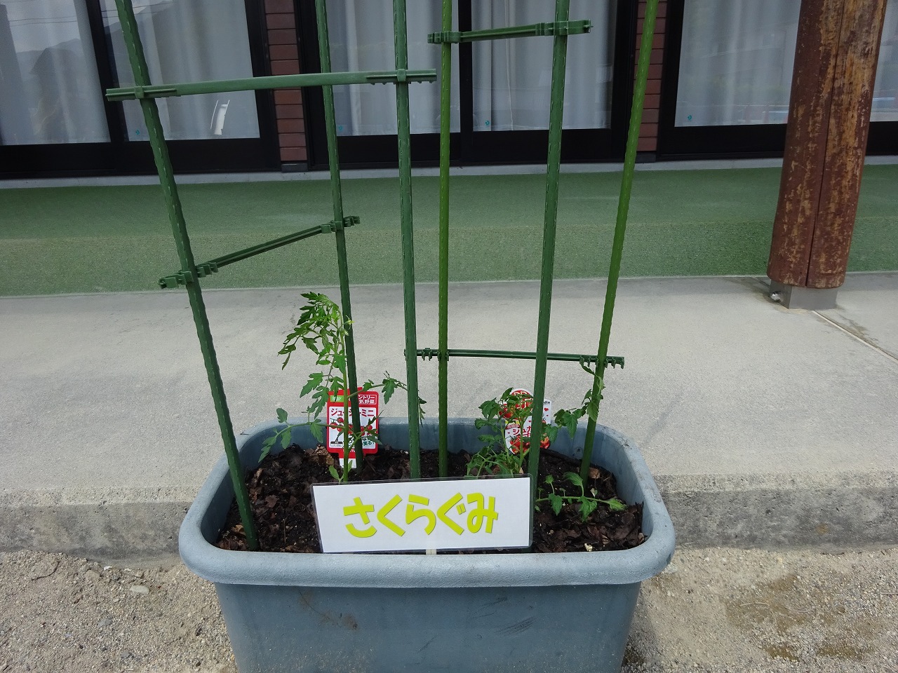 年中さんも、先生がミニトマトの苗植えをしました。